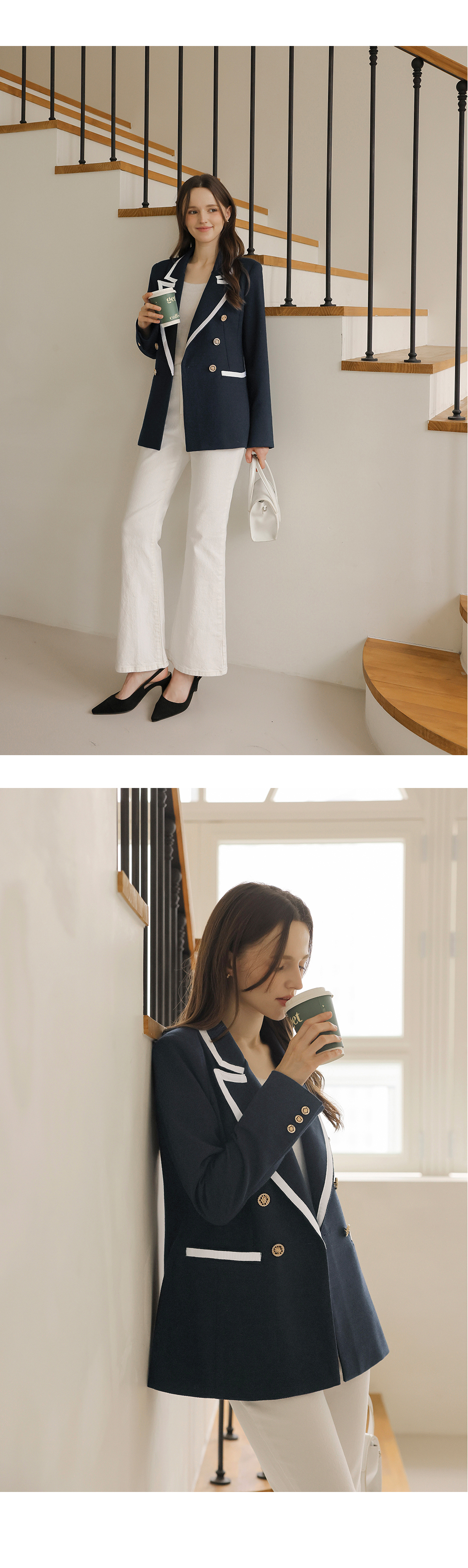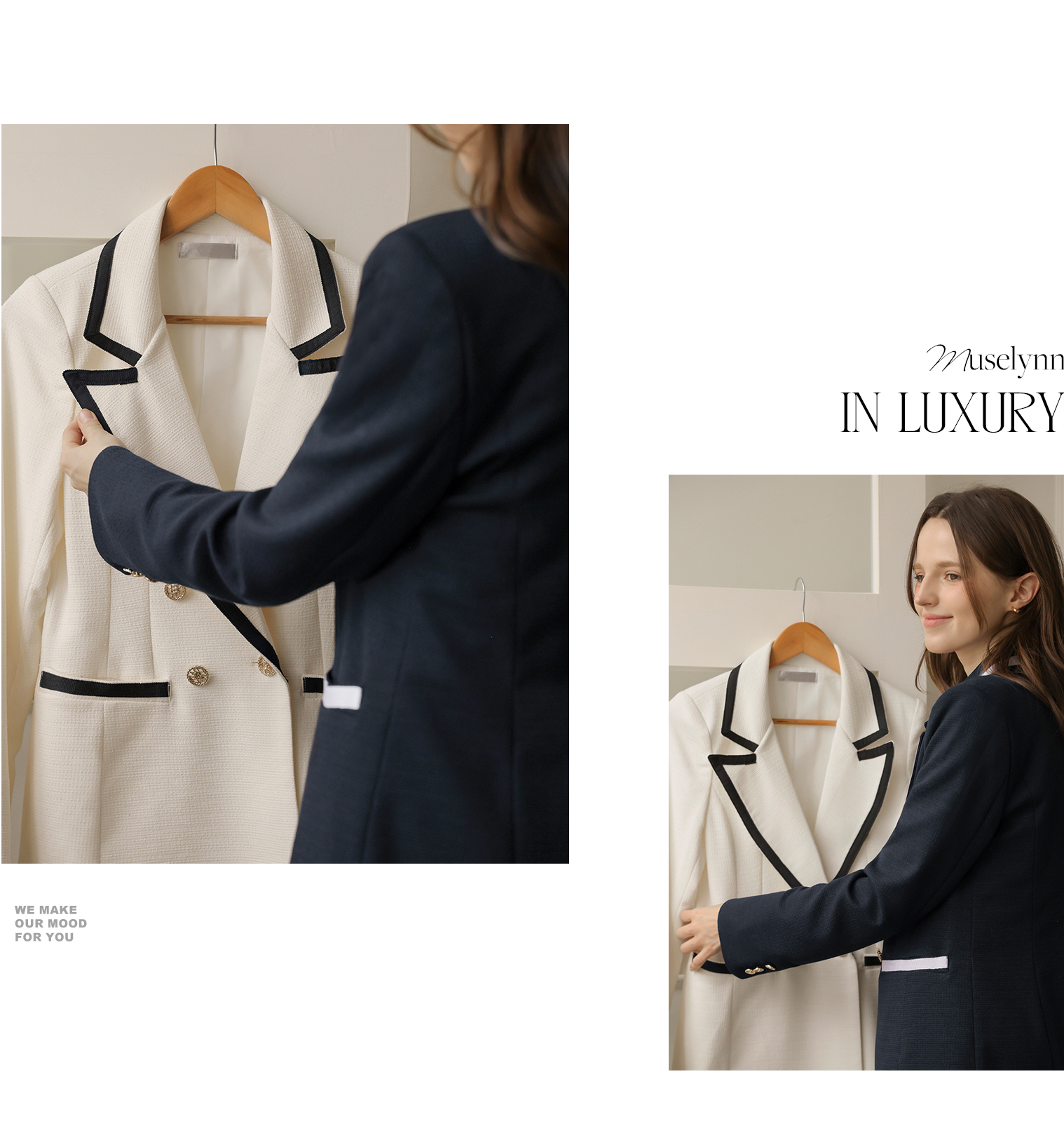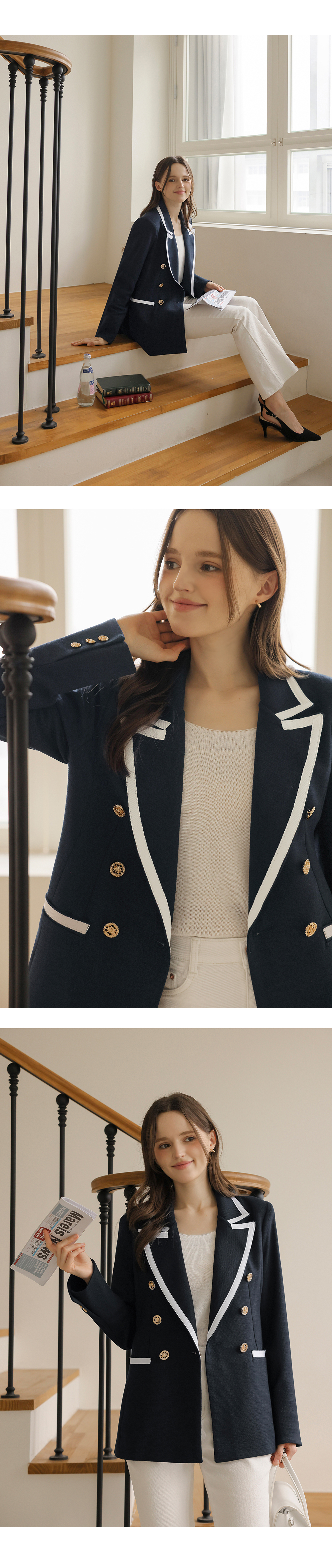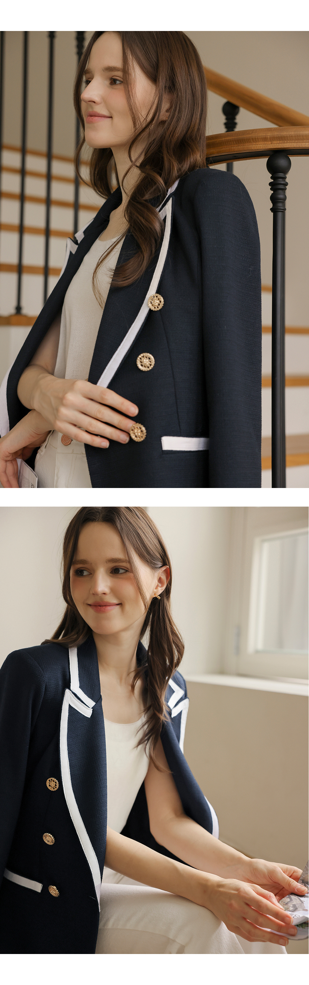 [뮤즈린] 바티 배색 테이핑 골드버튼 자켓