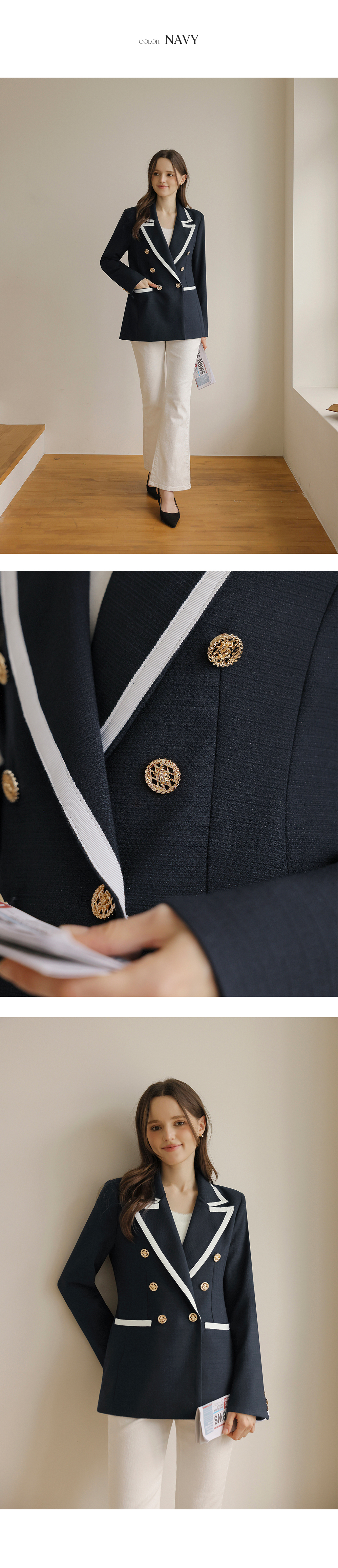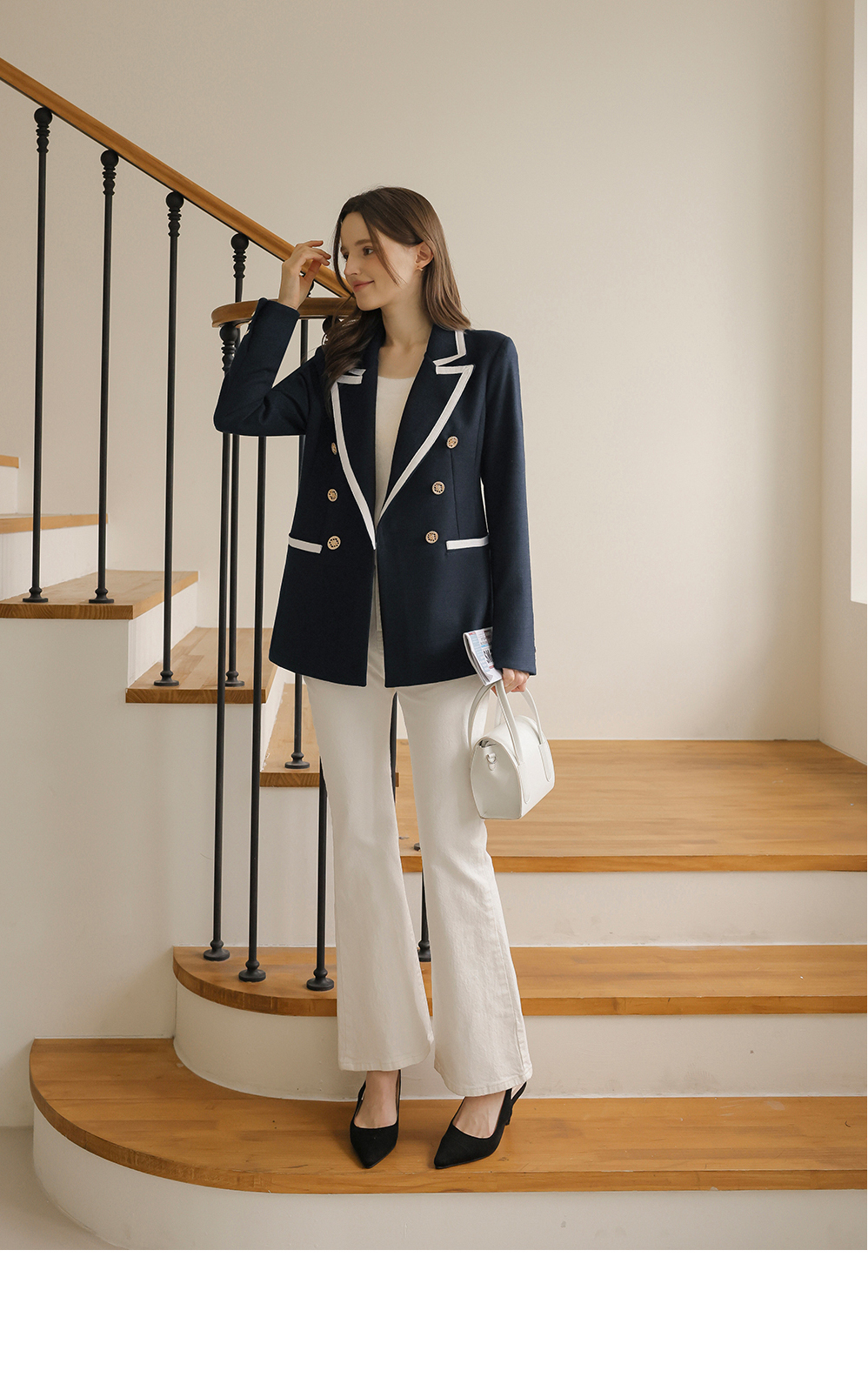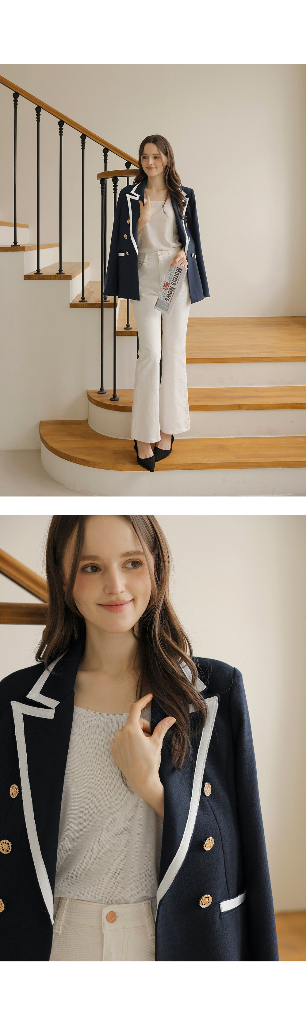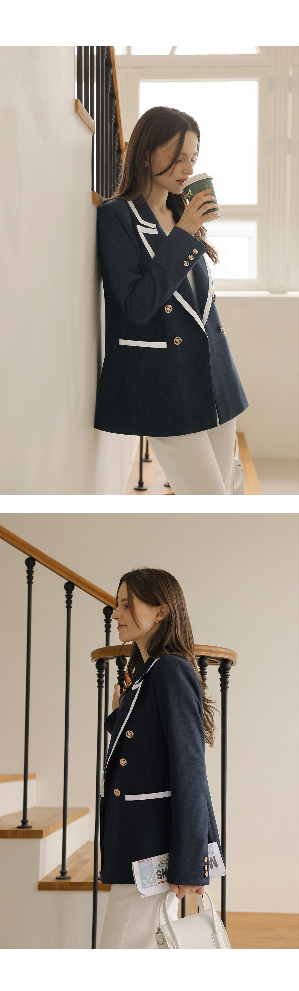 [뮤즈린] 바티 배색 테이핑 골드버튼 자켓