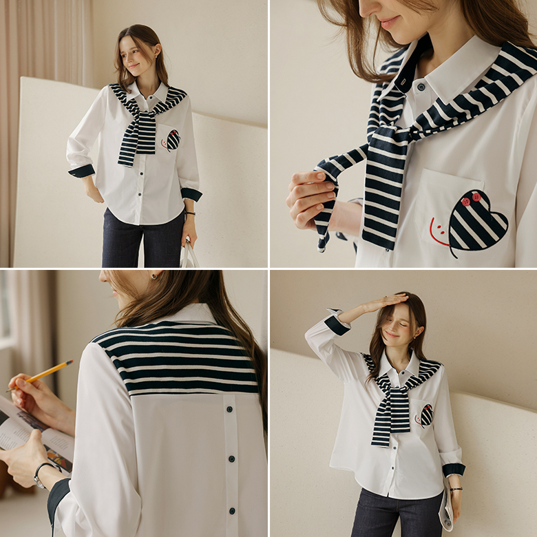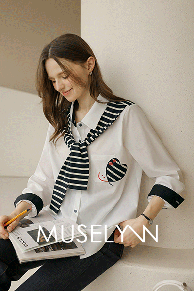 [뮤즈린] 디유 스트라이프 숄 자수 셔츠