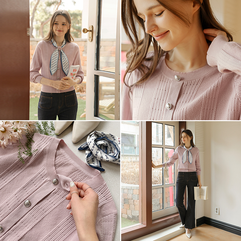 [뮤즈린] [스카프set] 라밍 실버버튼 짜임 니트