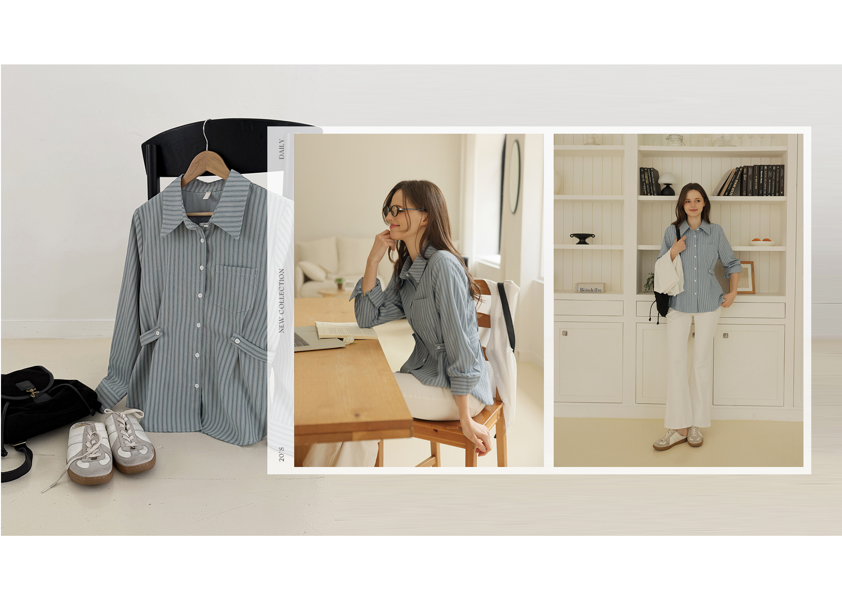 [뮤즈린] 쿠딘 비조 스트라이프 셔츠