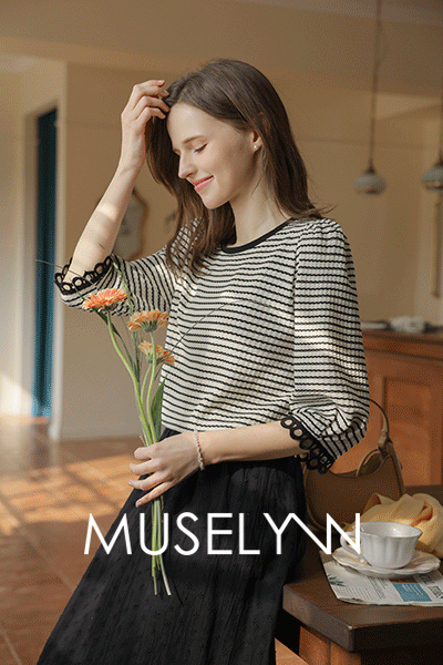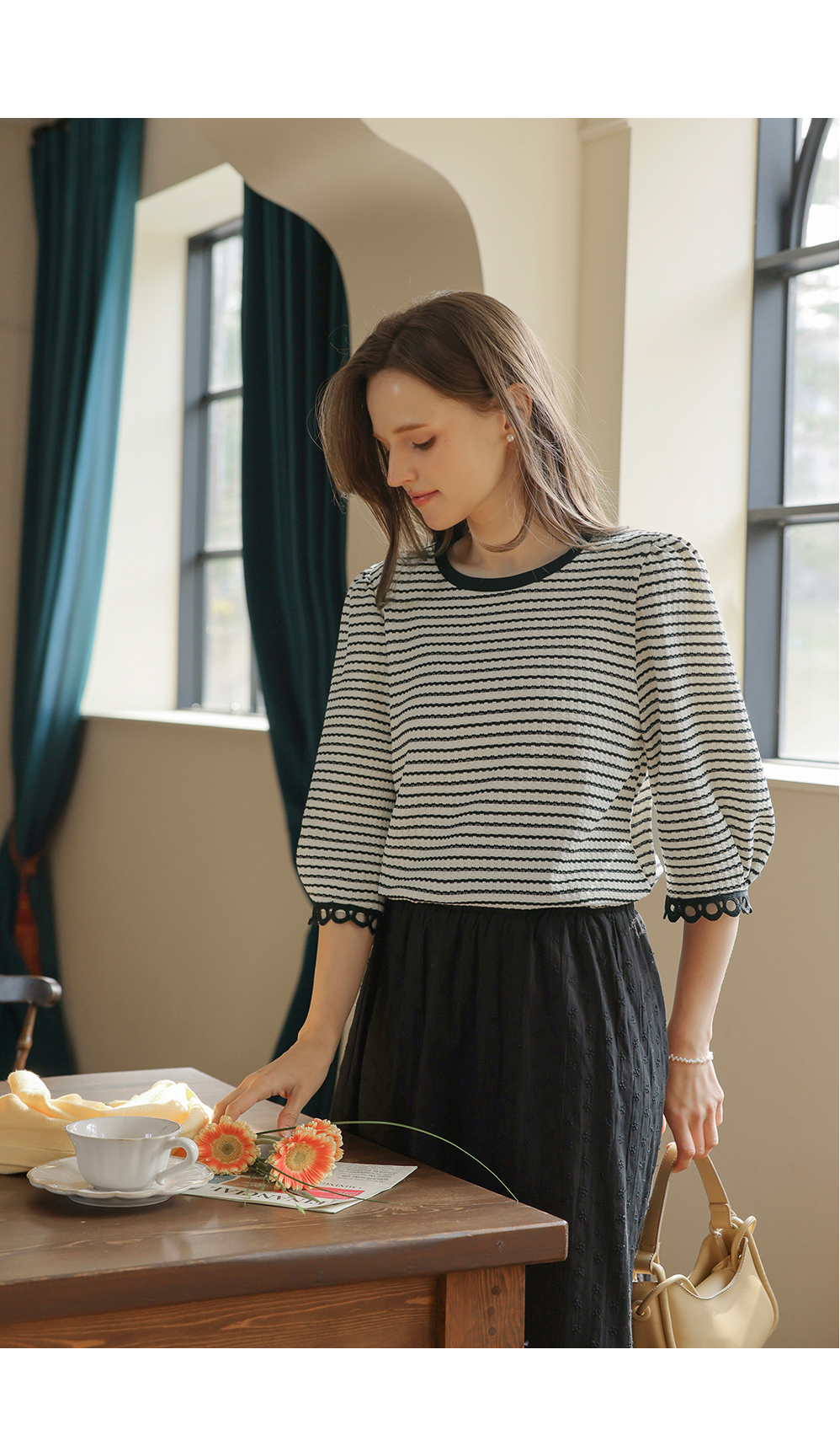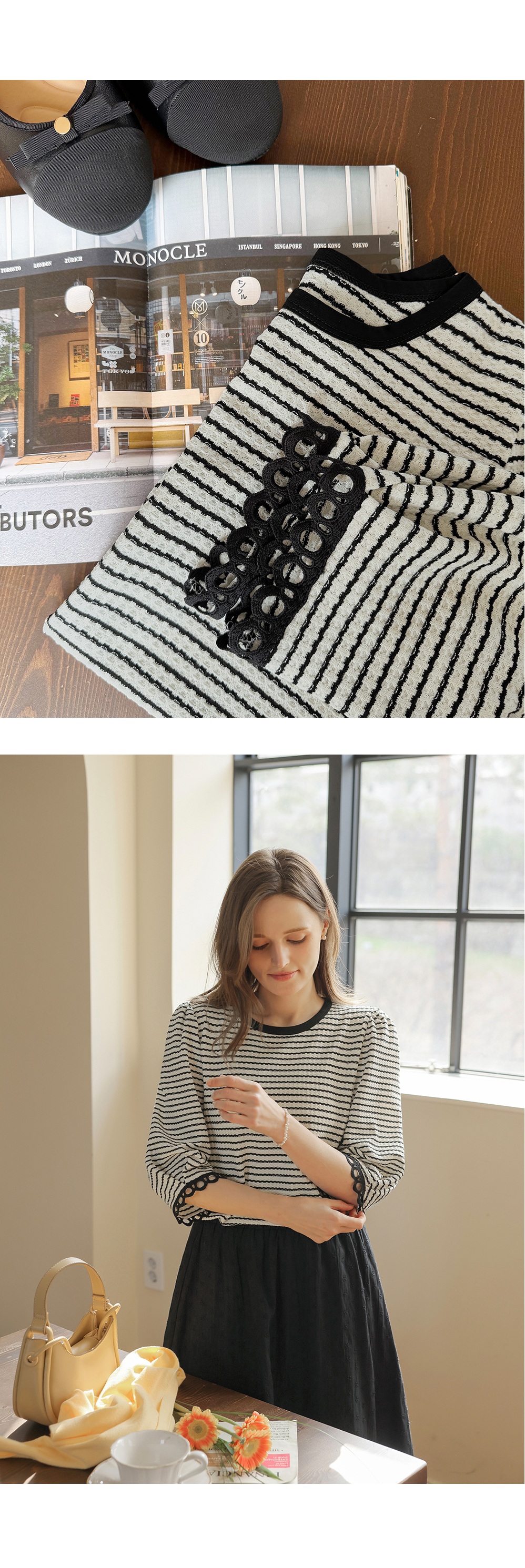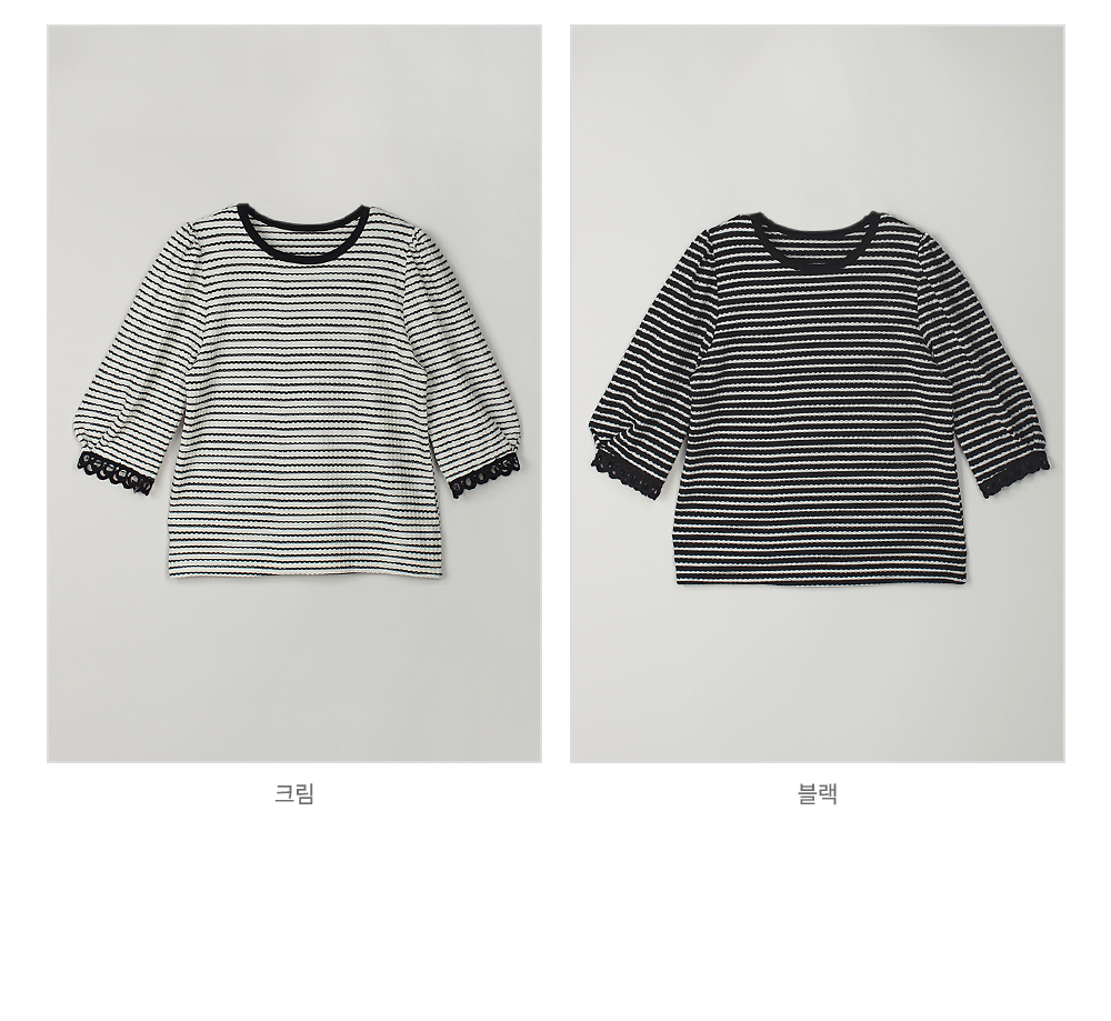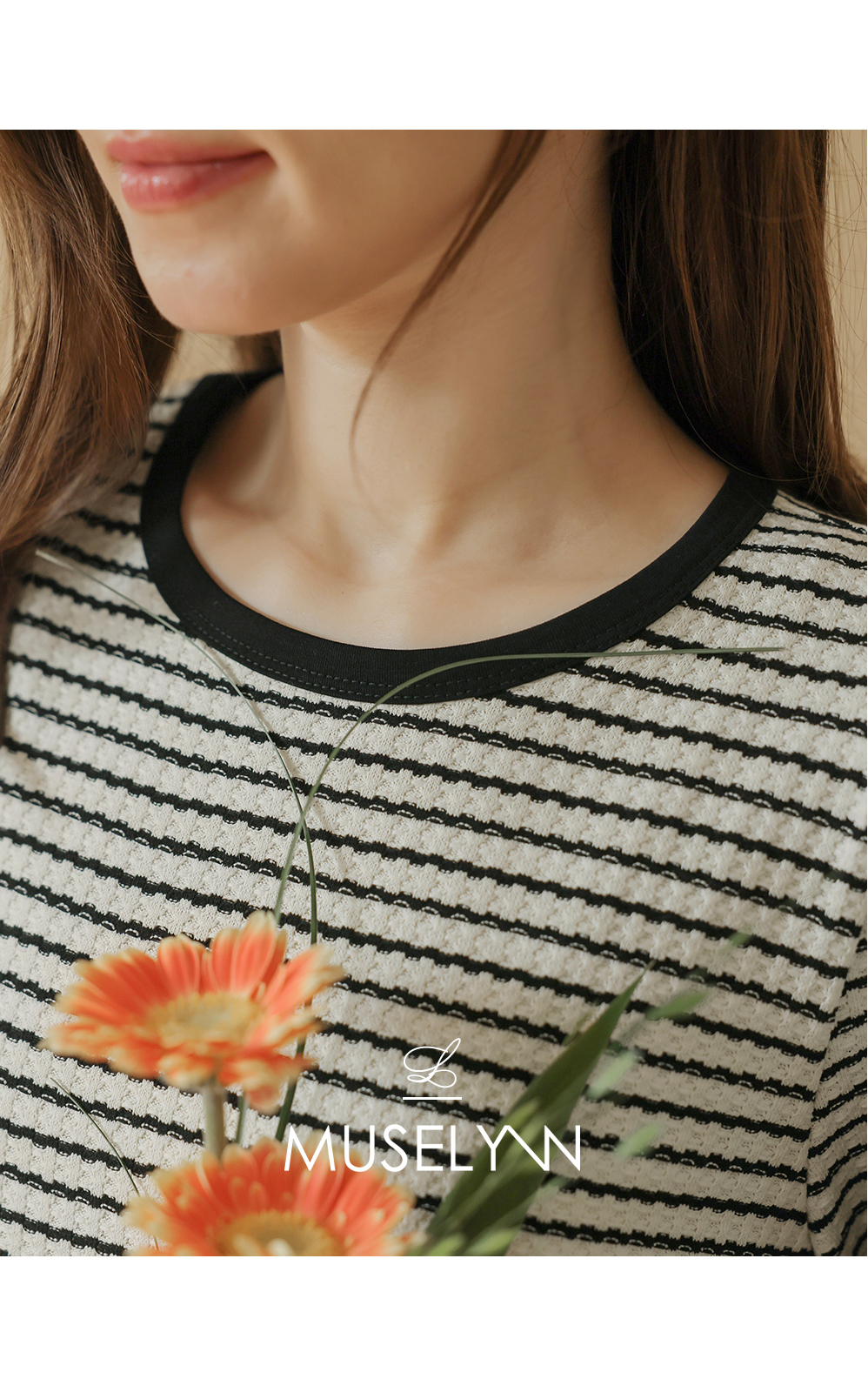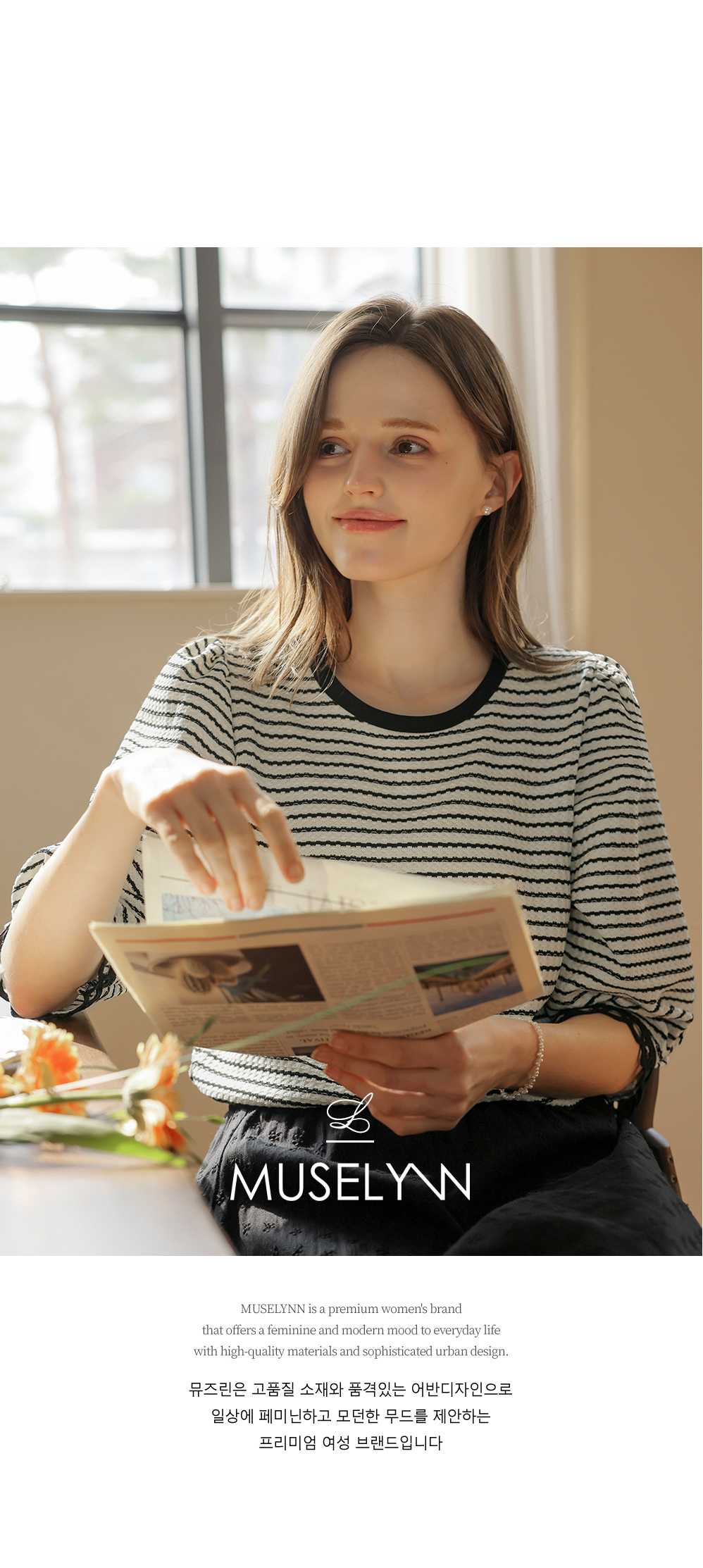 [뮤즈린] 이수 퍼프소매 스트라이프 블라우스 티