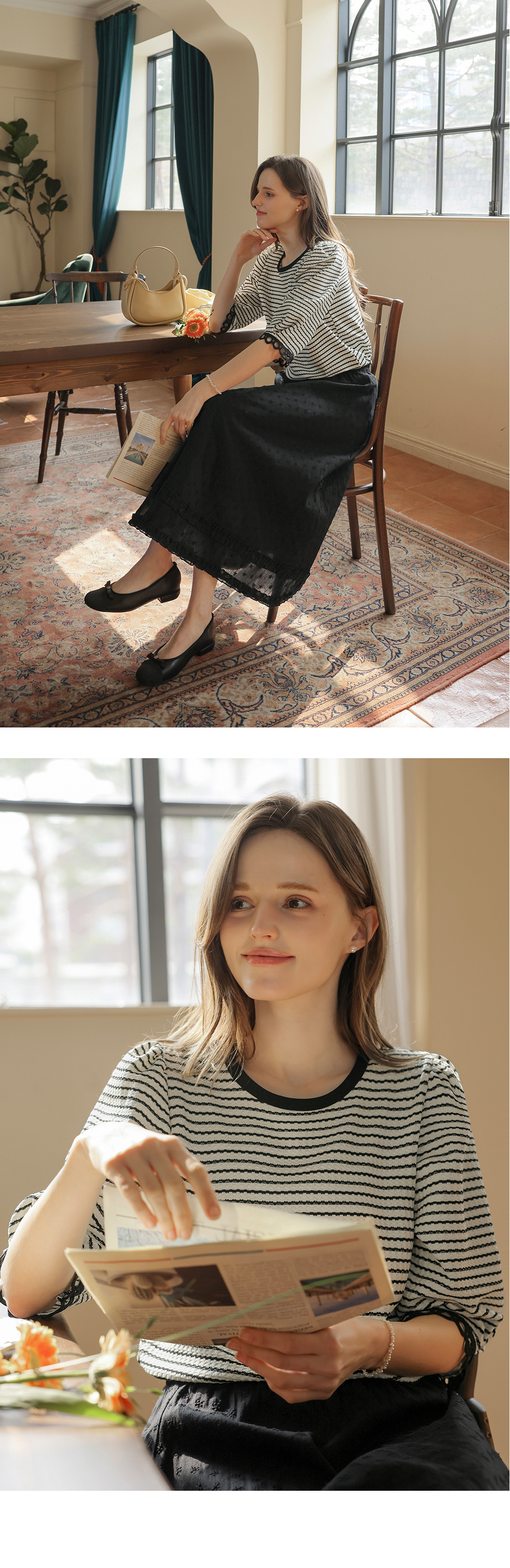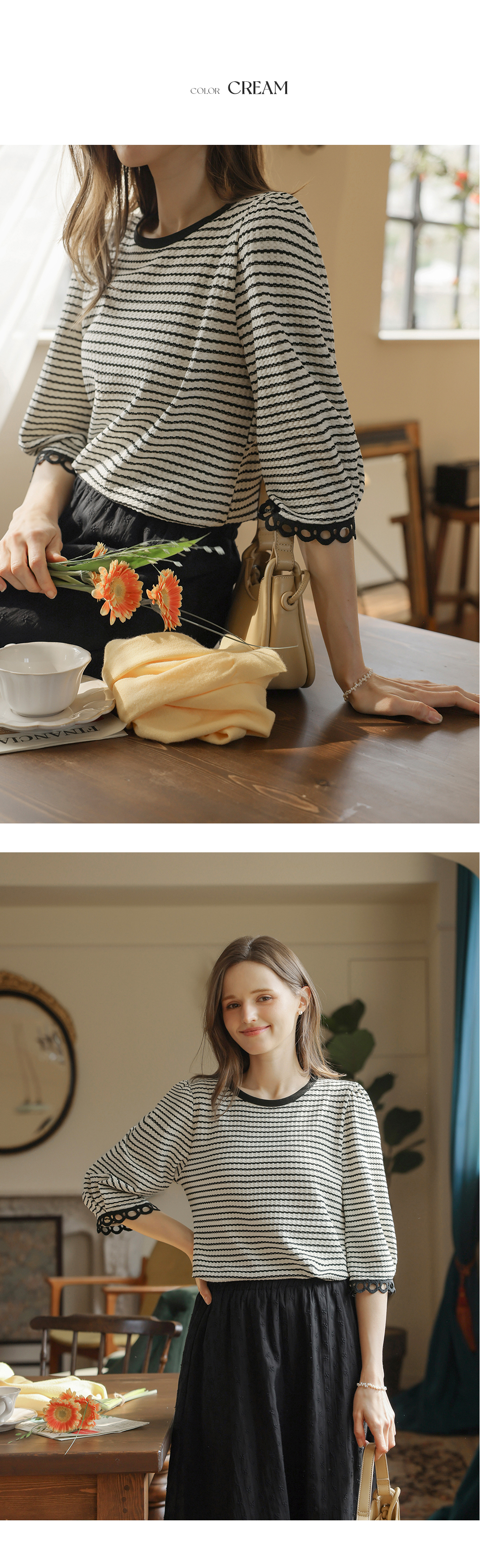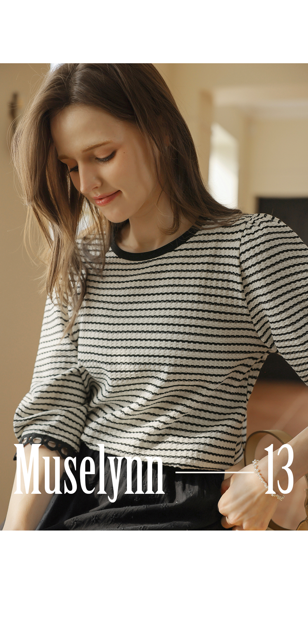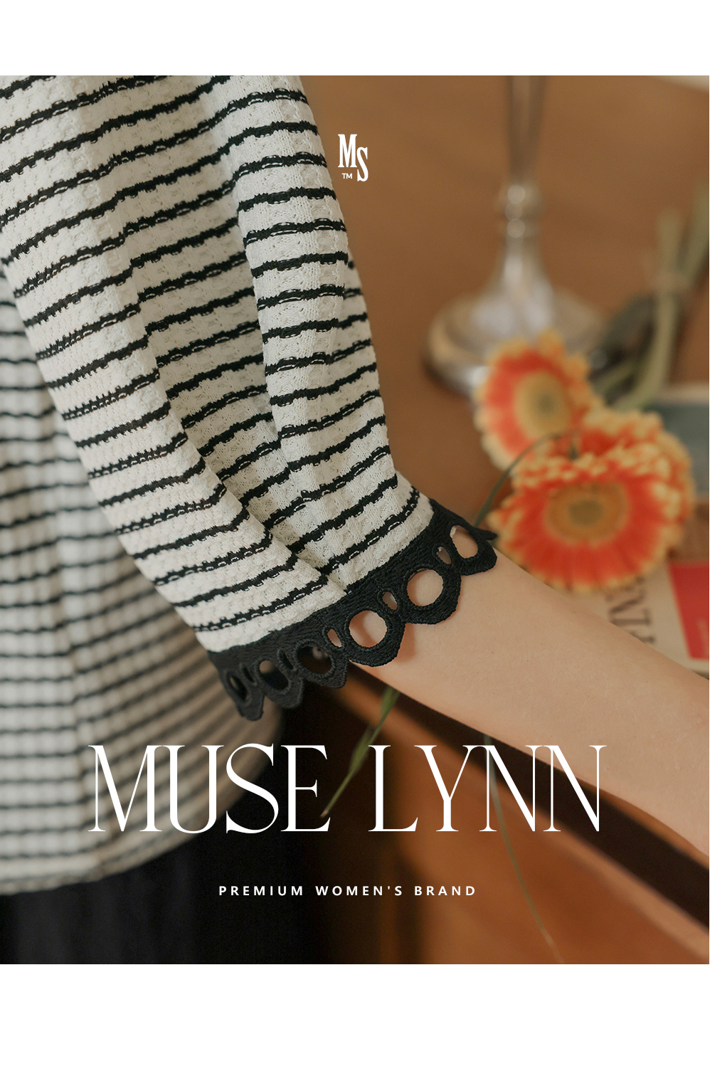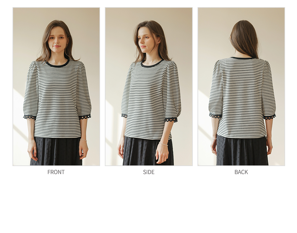 [뮤즈린] 이수 퍼프소매 스트라이프 블라우스 티