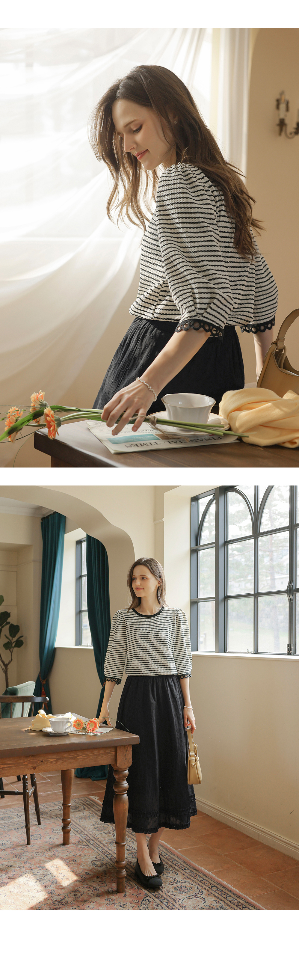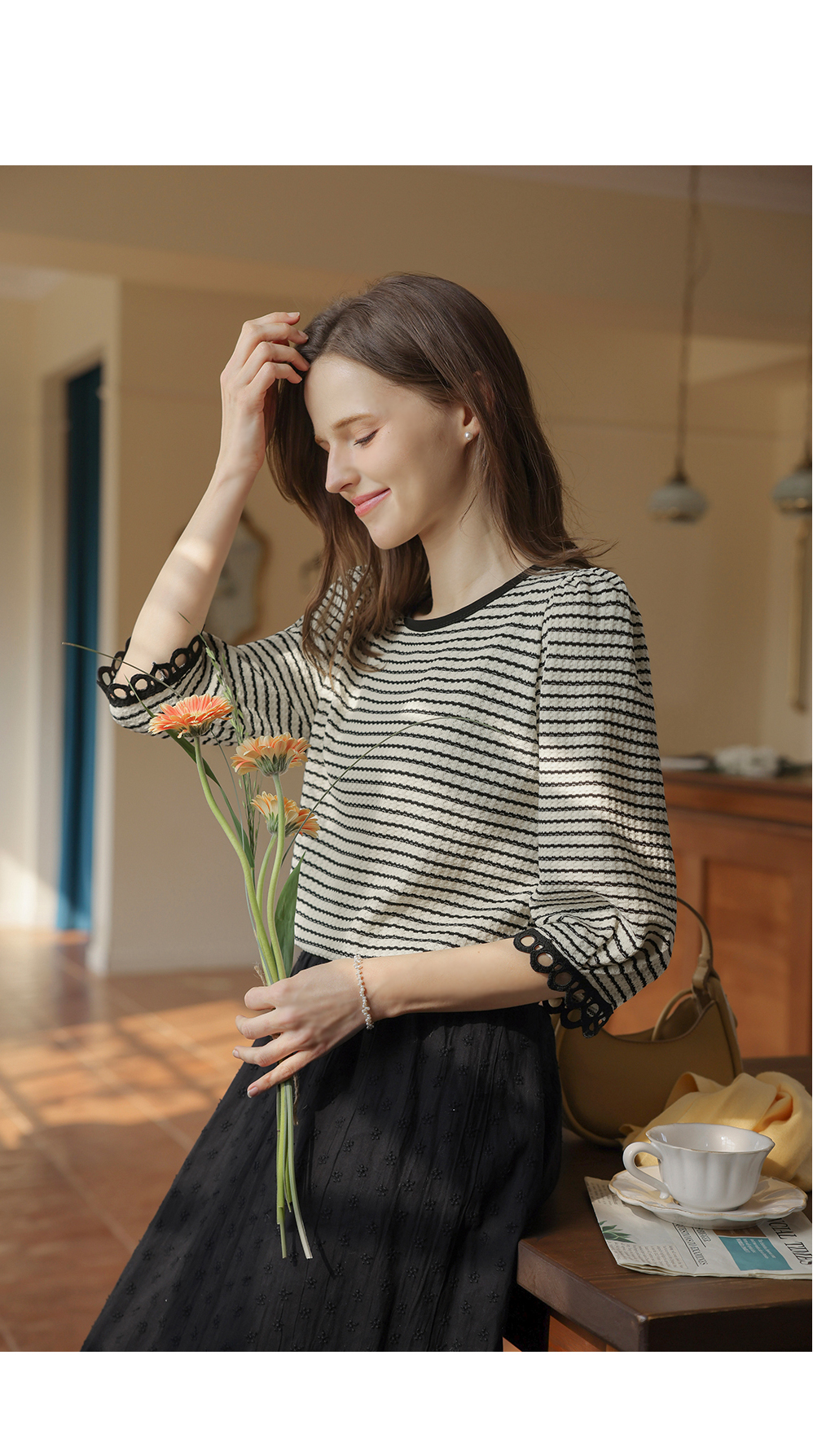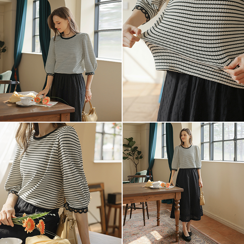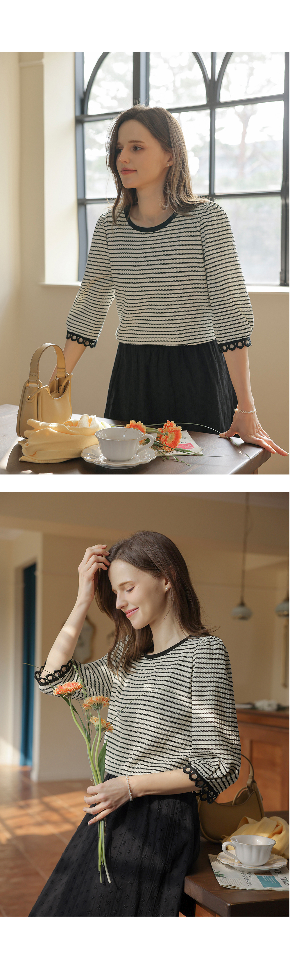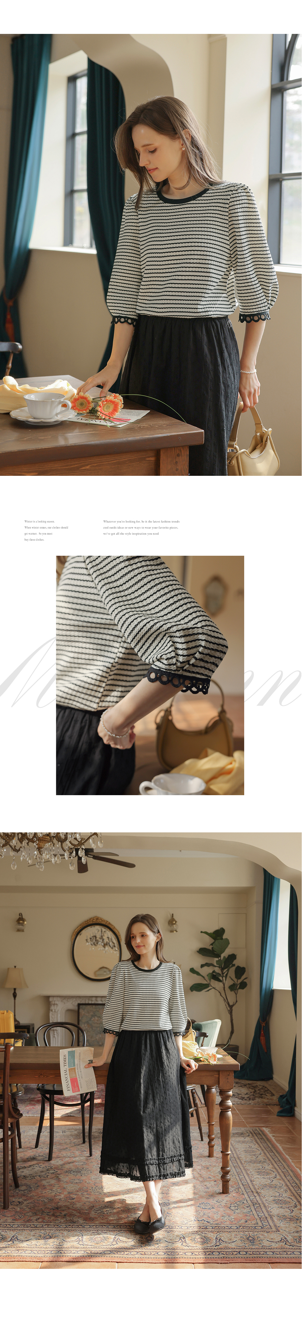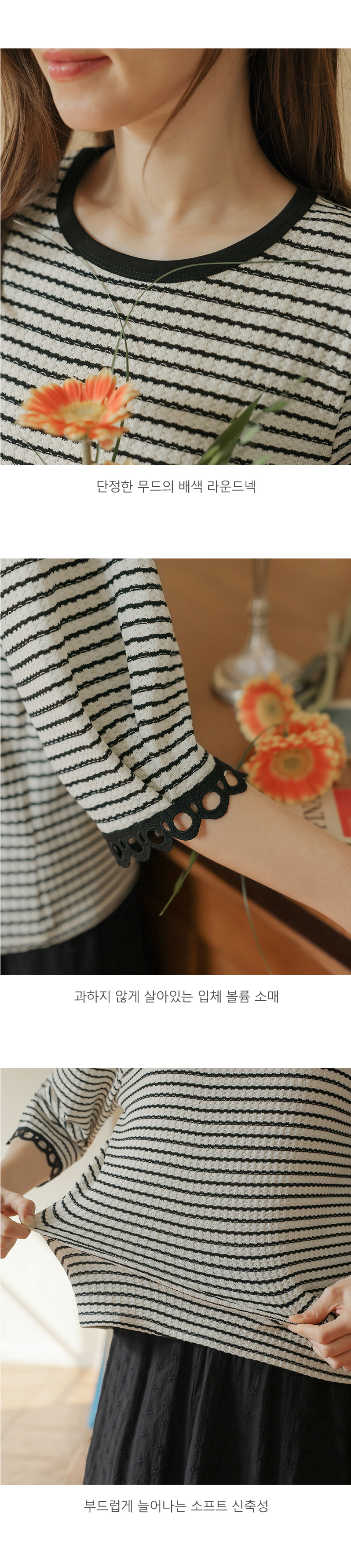 [뮤즈린] 이수 퍼프소매 스트라이프 블라우스 티