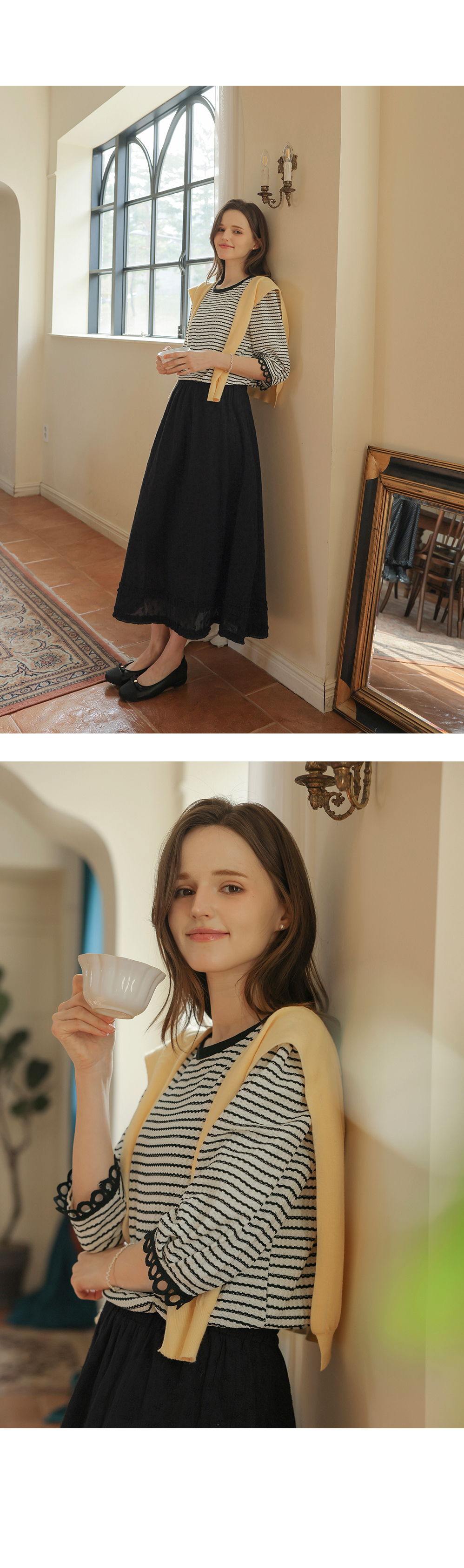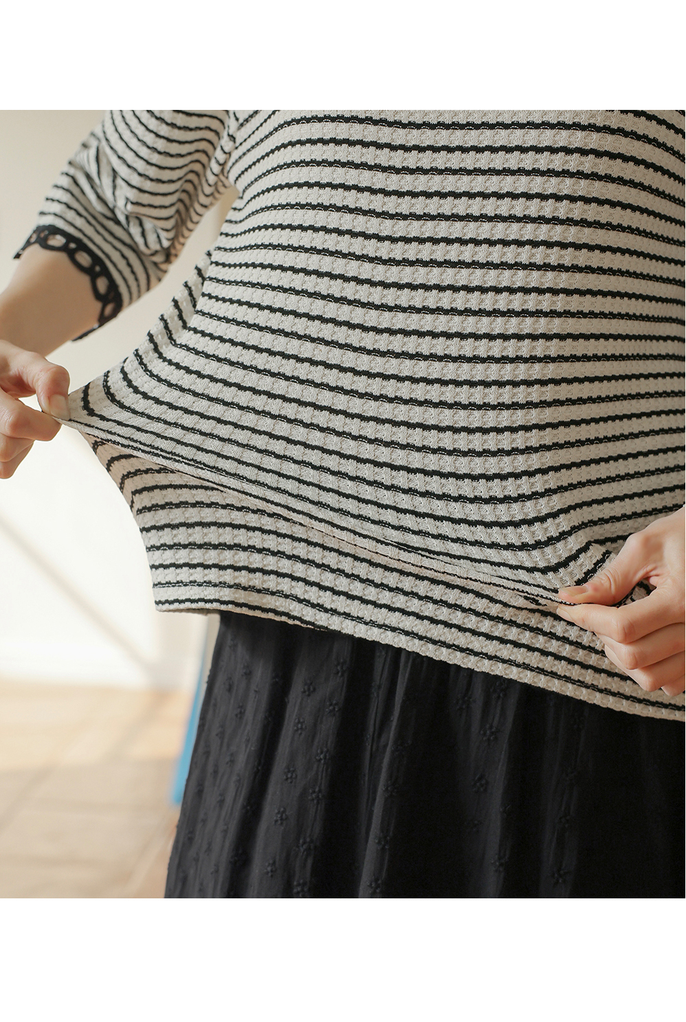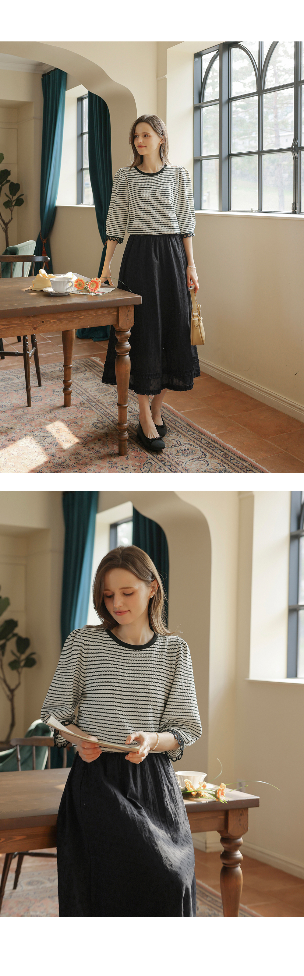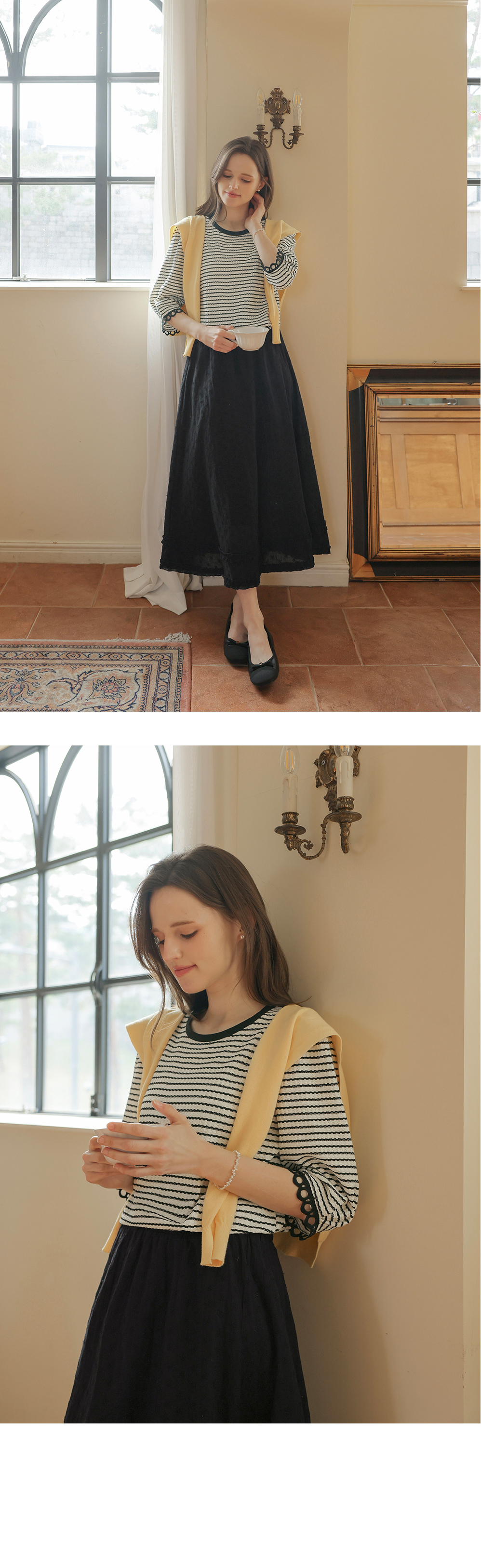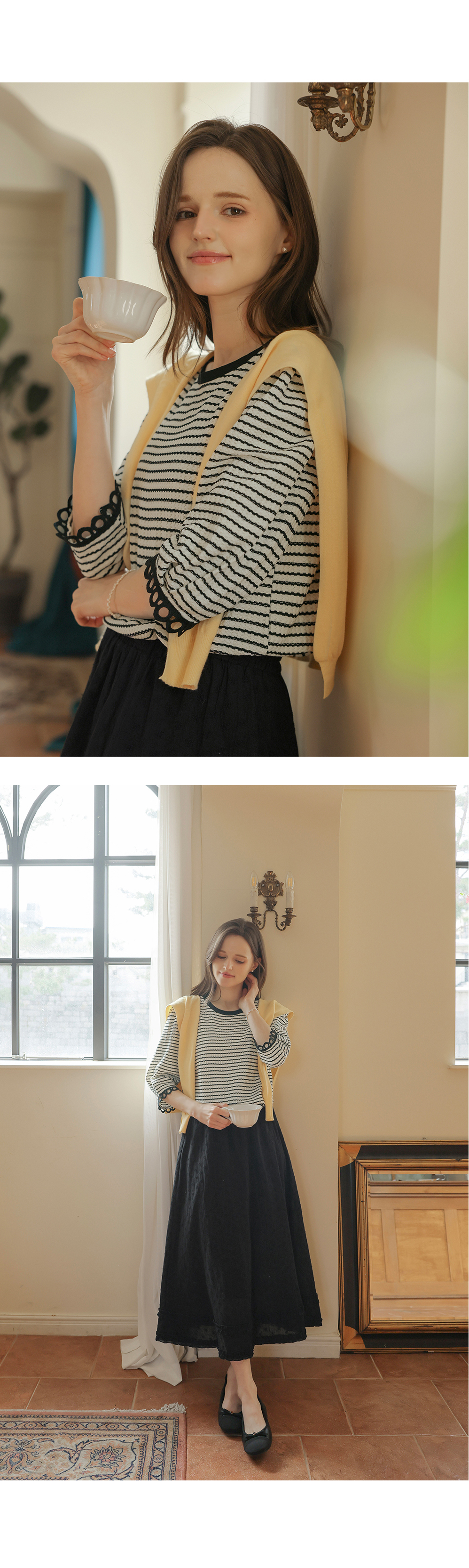 [뮤즈린] 이수 퍼프소매 스트라이프 블라우스 티