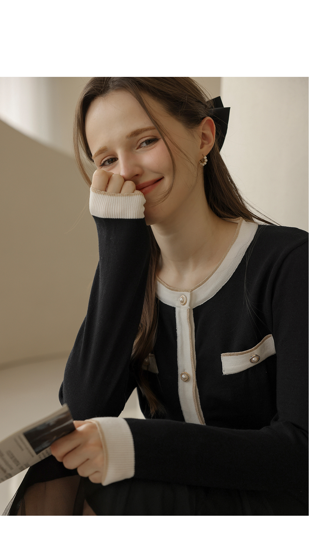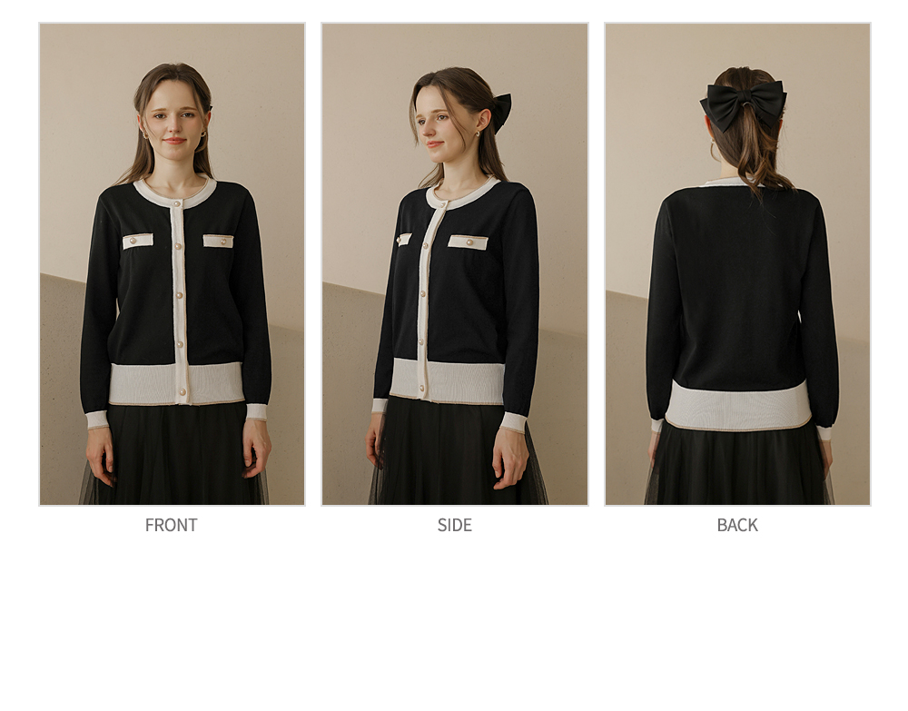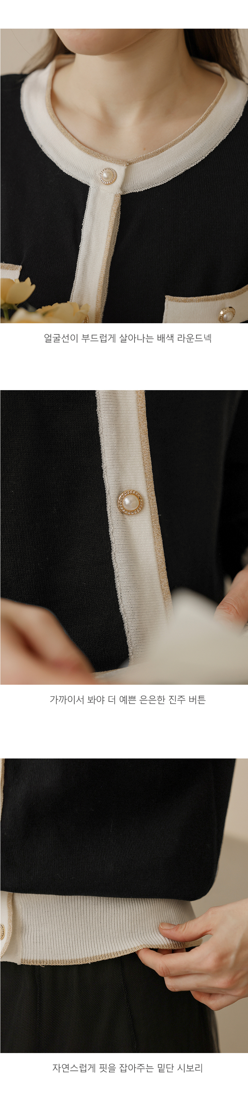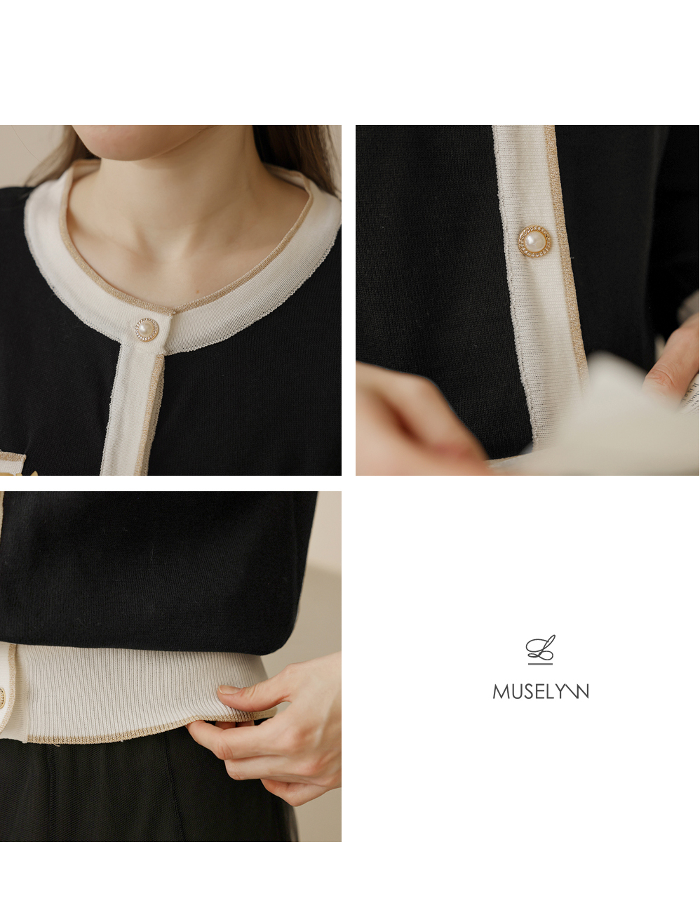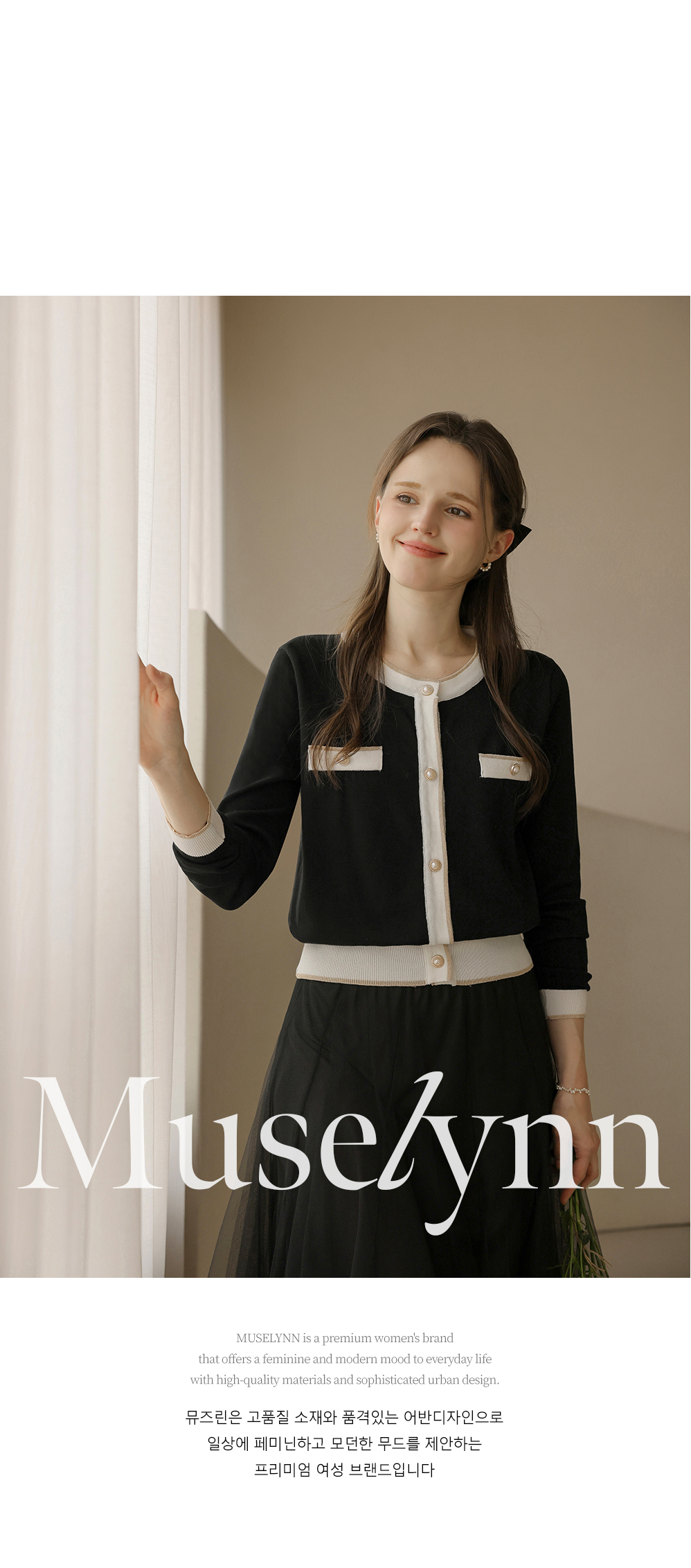 [뮤즈린] 아뜨랑 진주버튼 배색 가디건