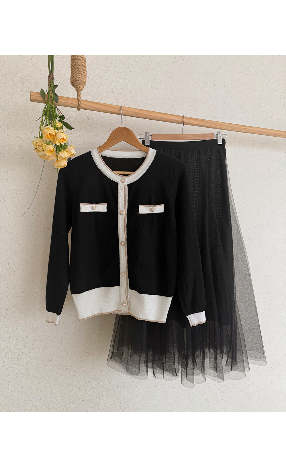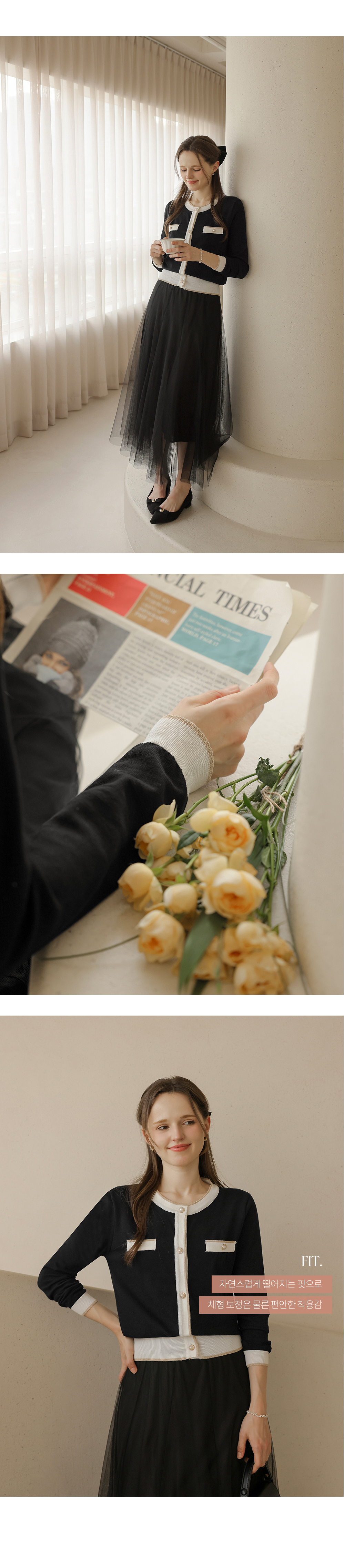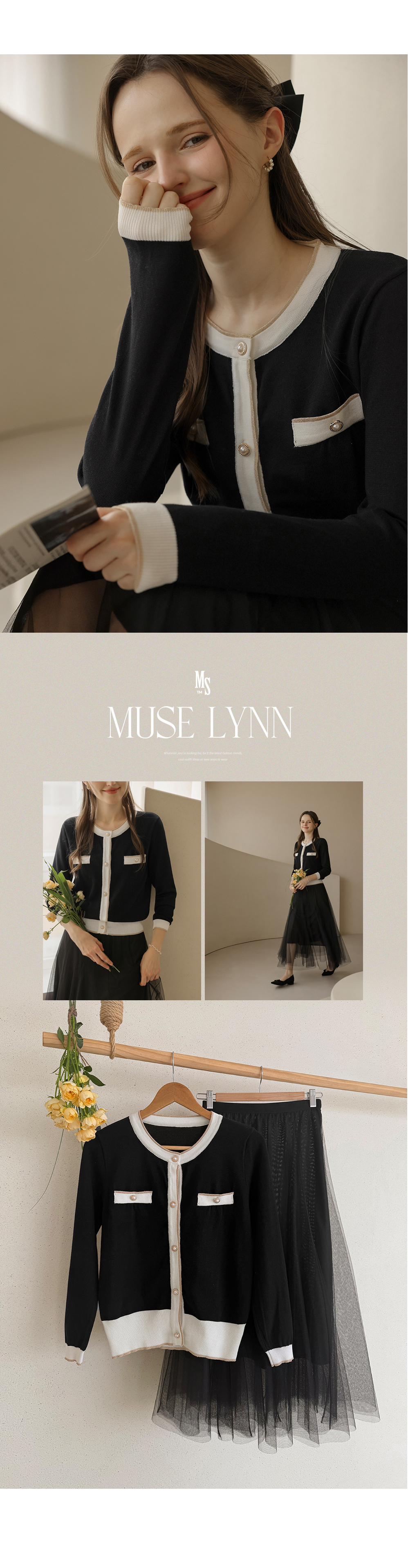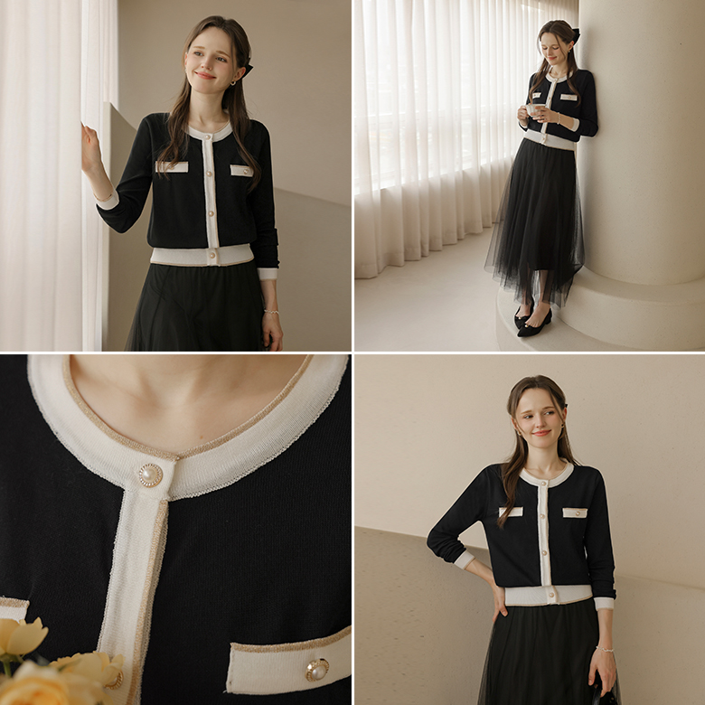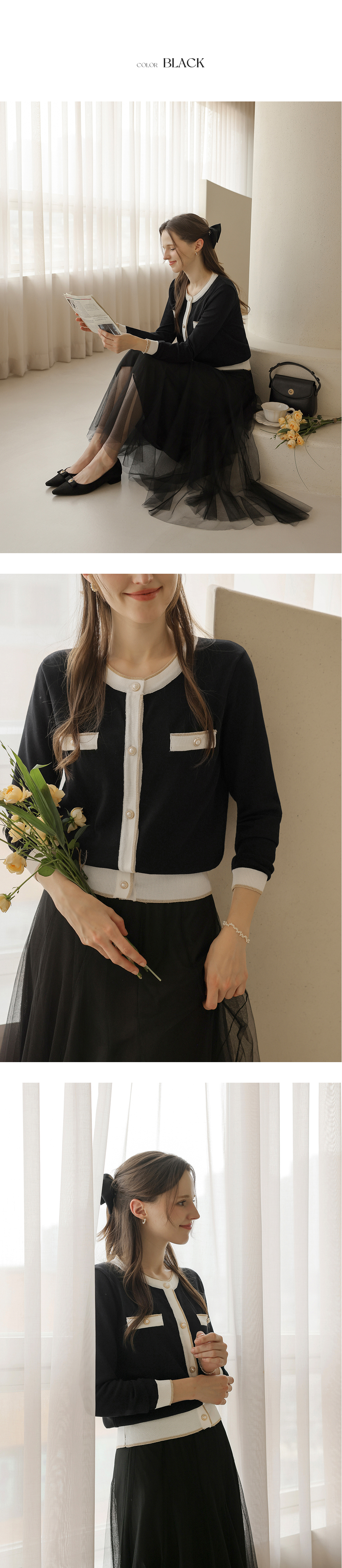 [뮤즈린] 아뜨랑 진주버튼 배색 가디건