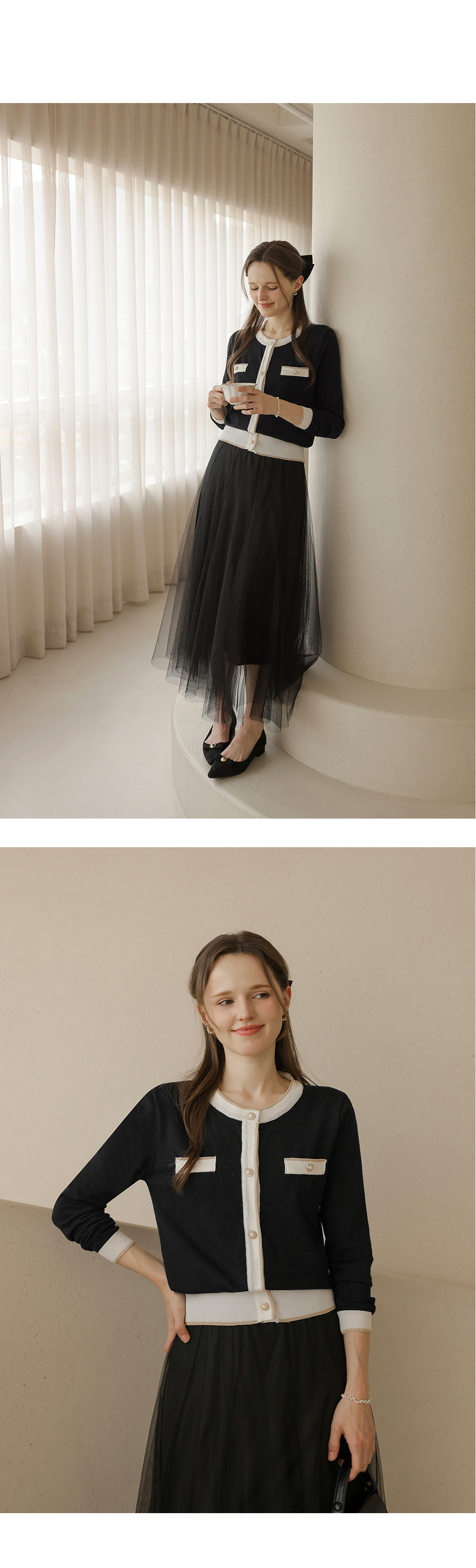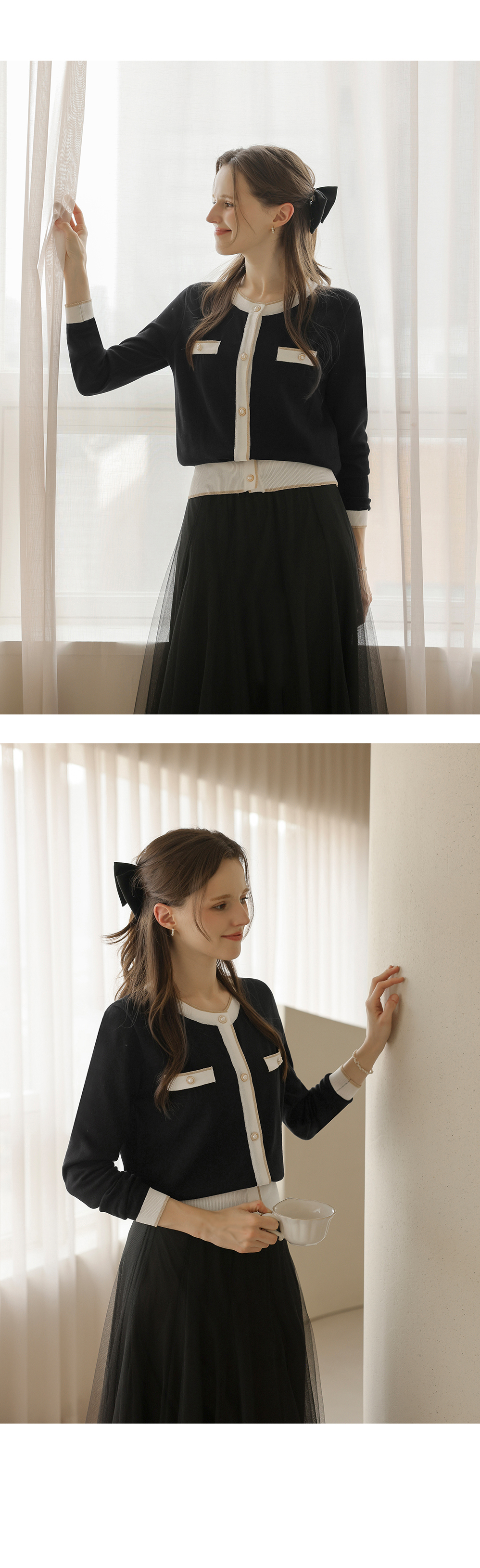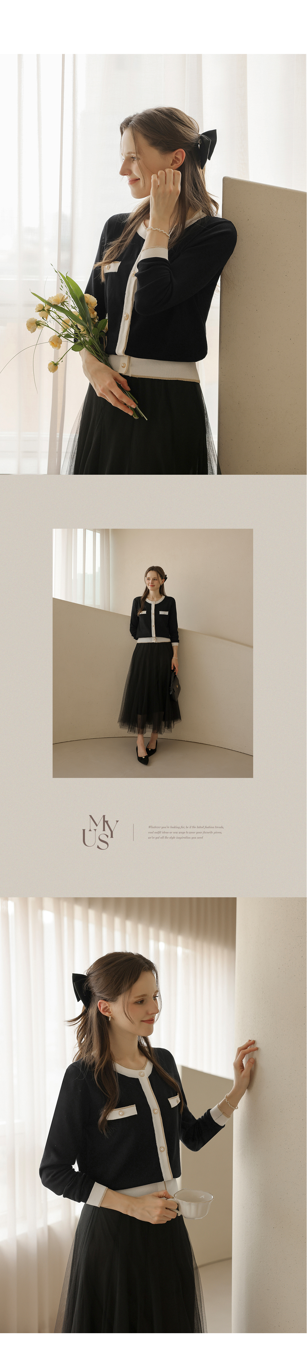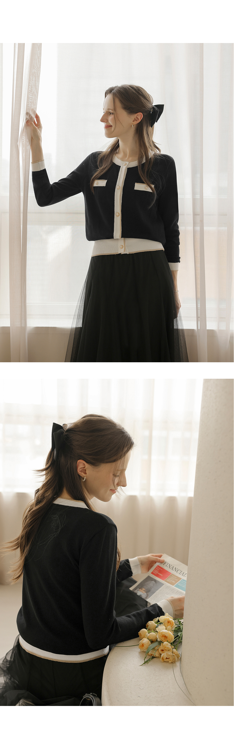 [뮤즈린] 아뜨랑 진주버튼 배색 가디건