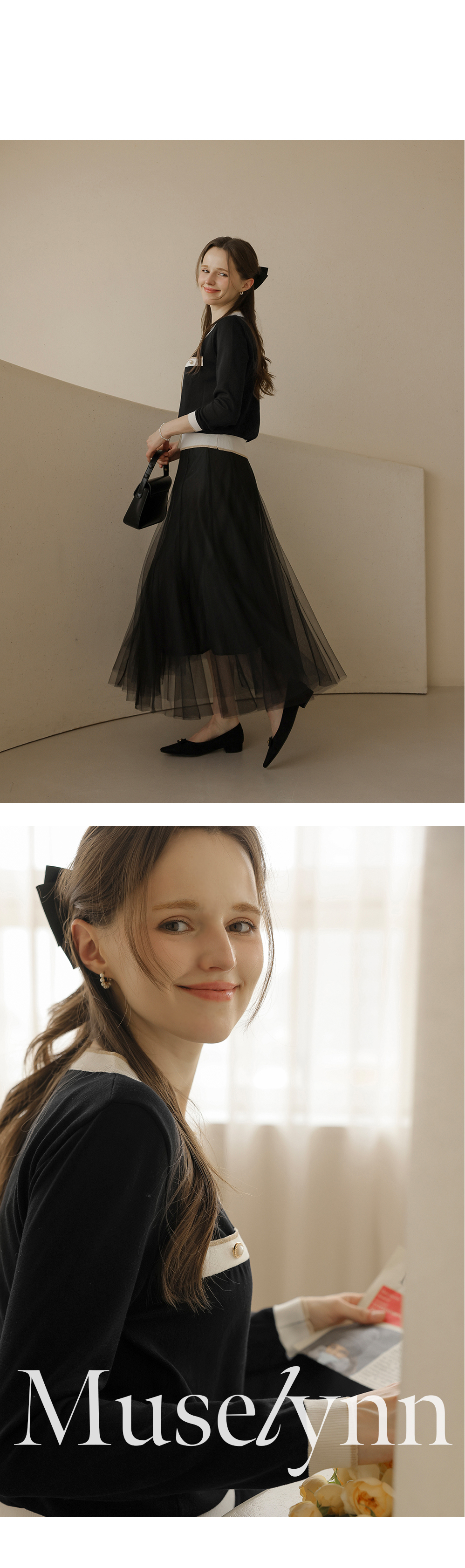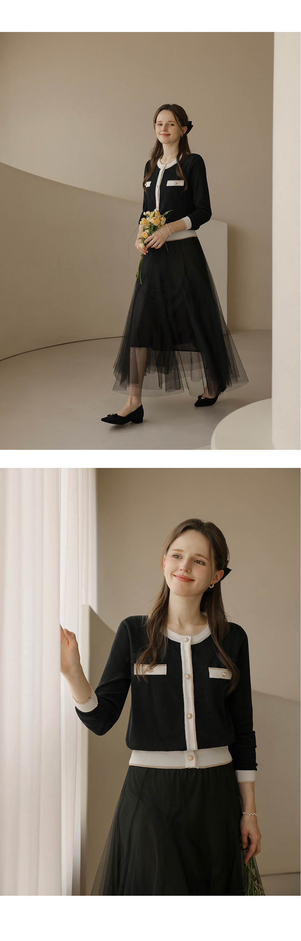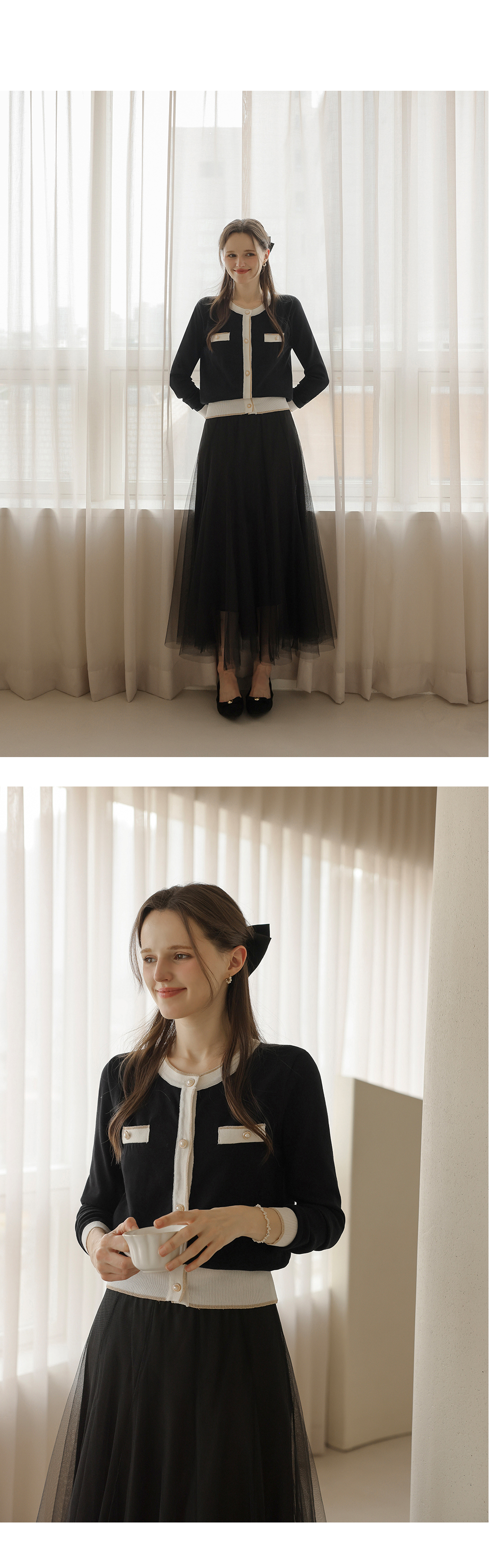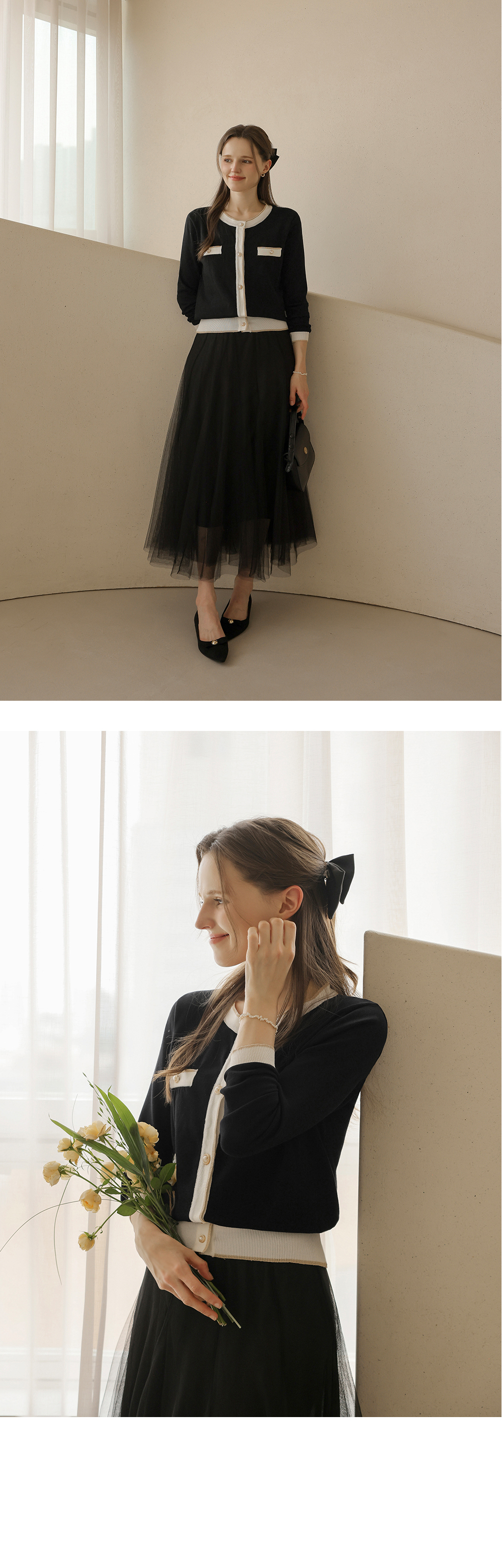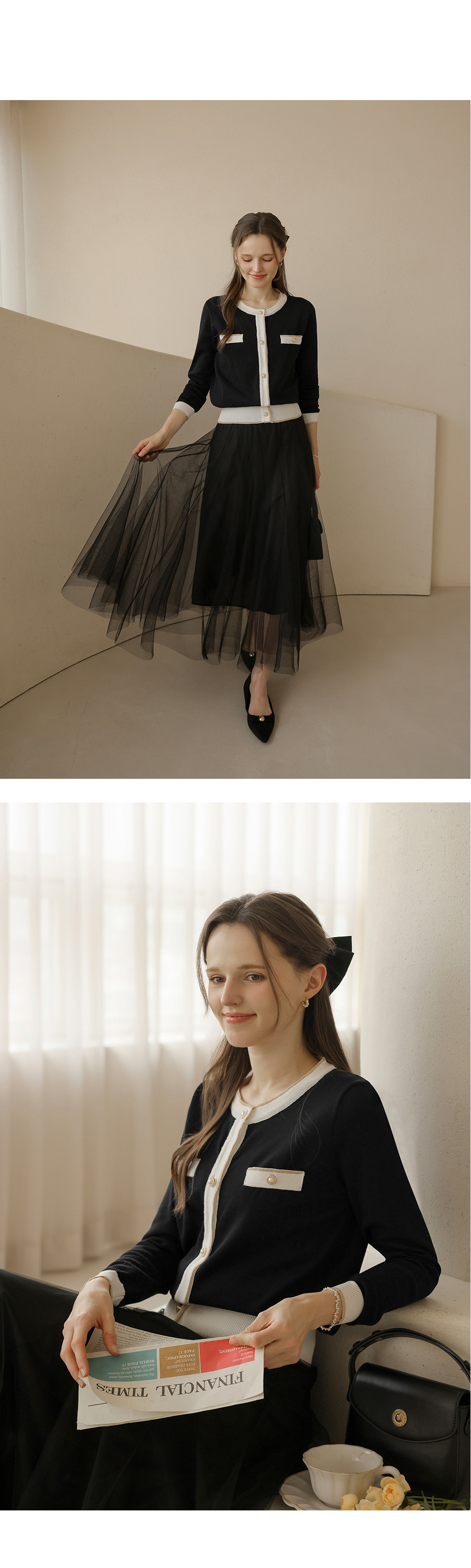 [뮤즈린] 아뜨랑 진주버튼 배색 가디건