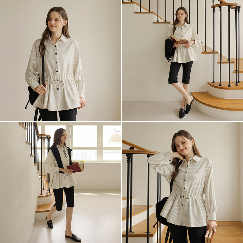 [뮤즈린] 멜드 스트링 스트라이프 셔츠