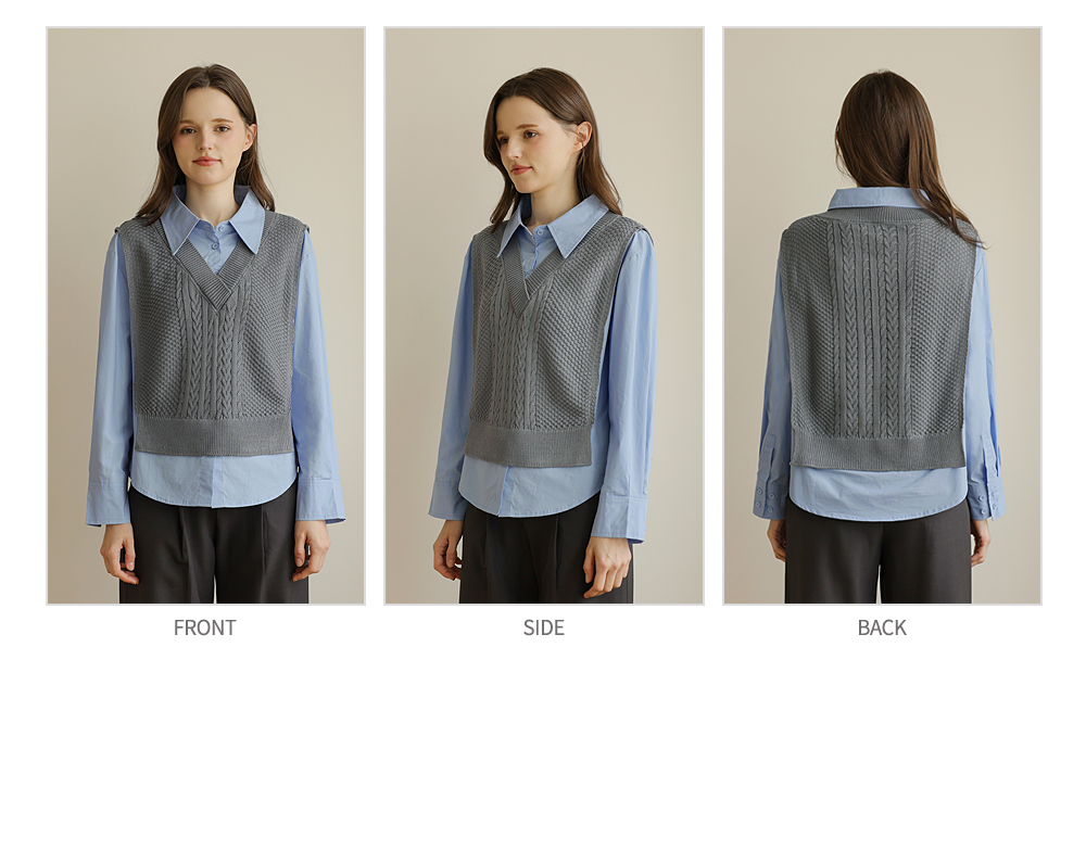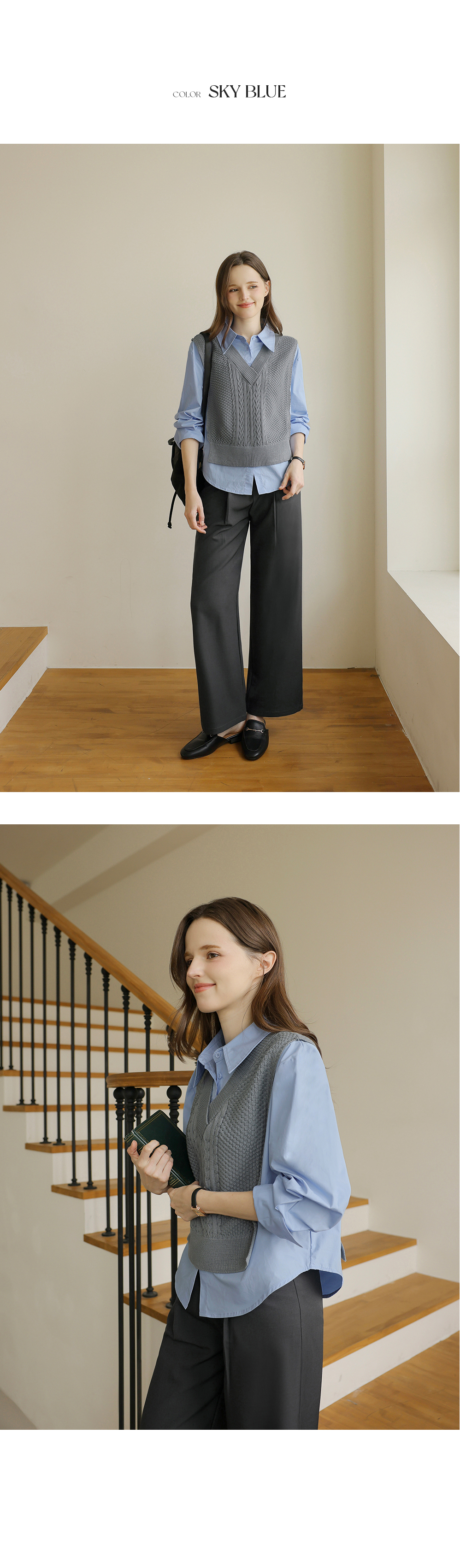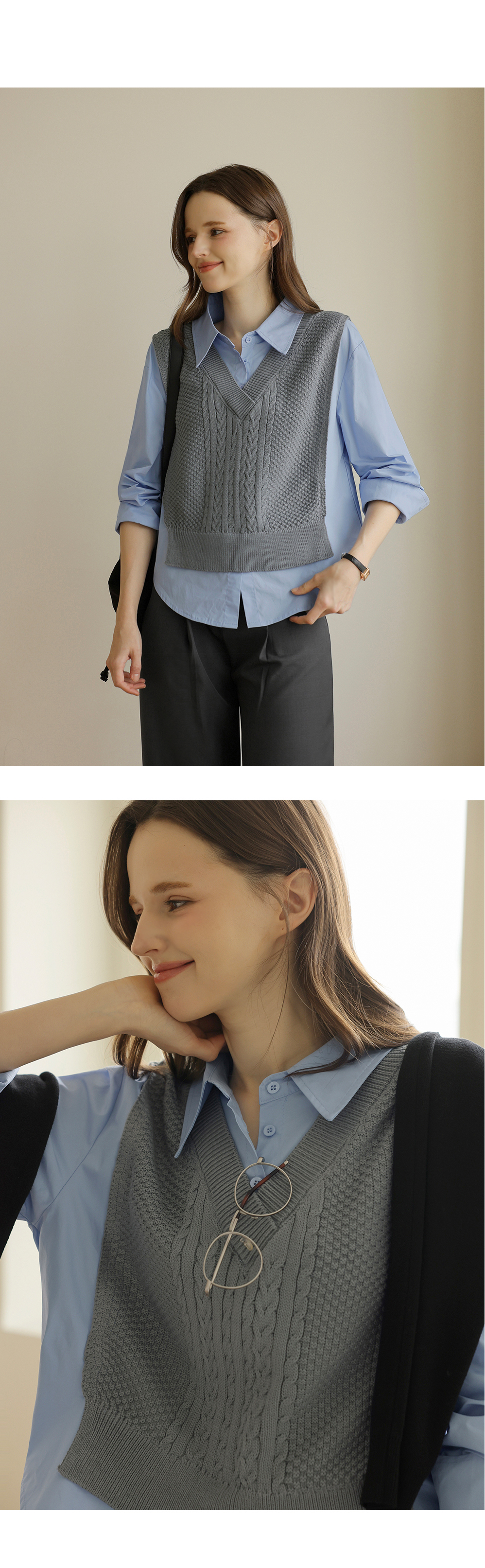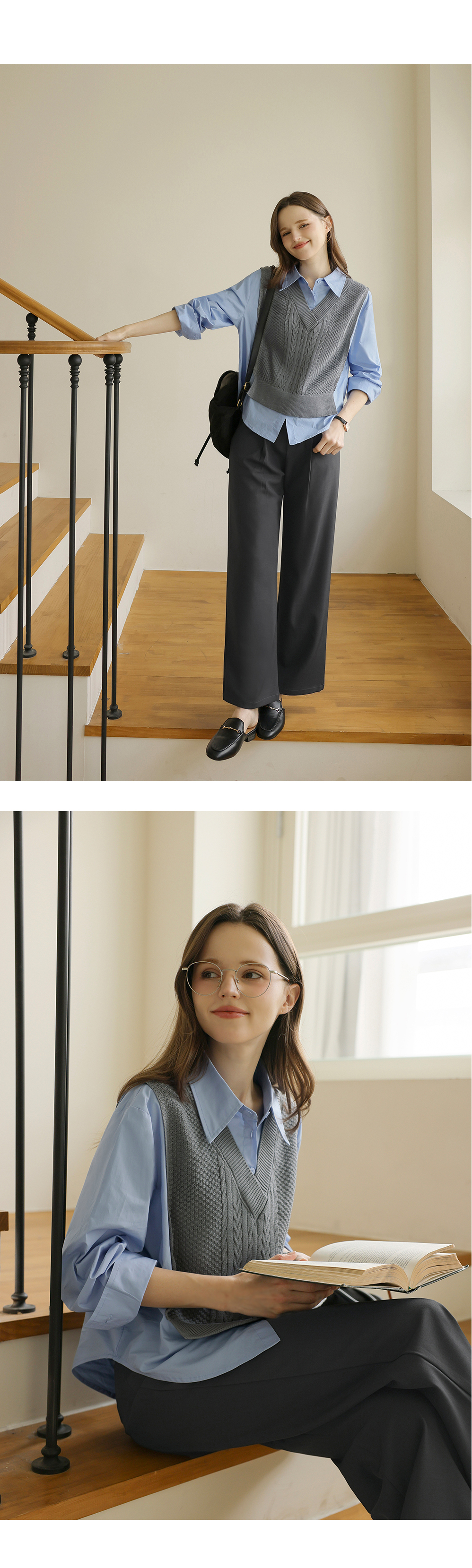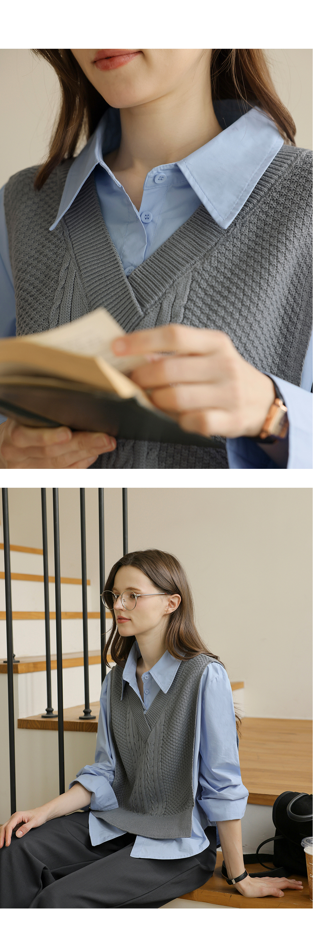 니트 : 아크릴 100% / 셔츠 : 면 60%, 폴리에스터 40%