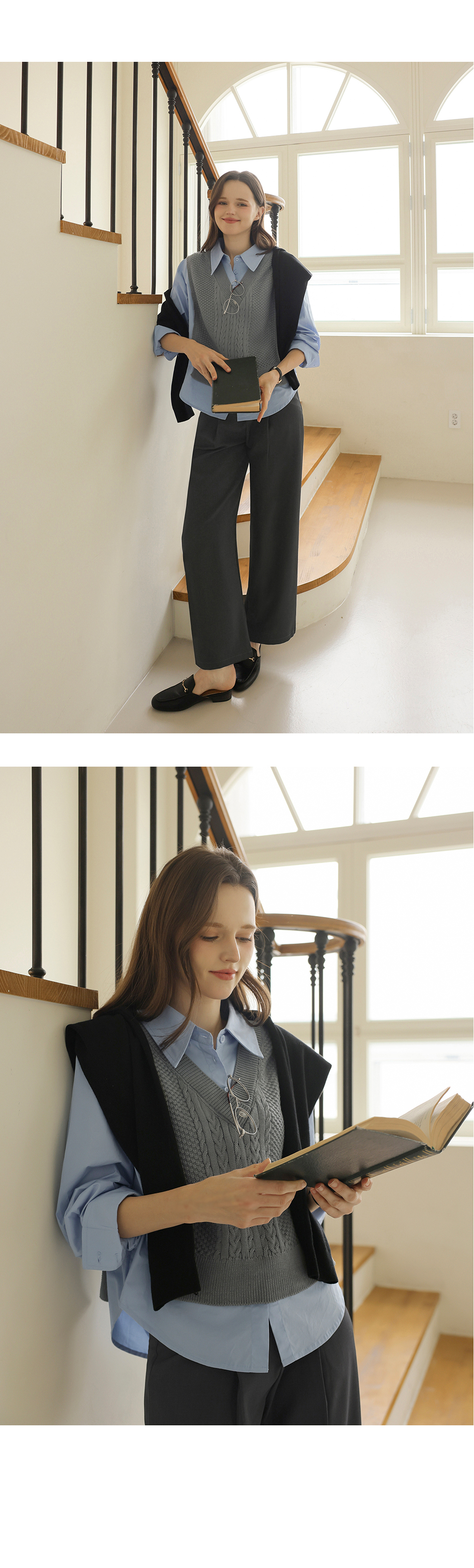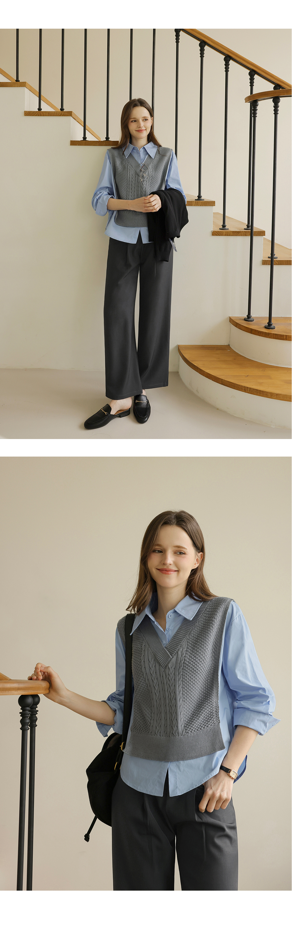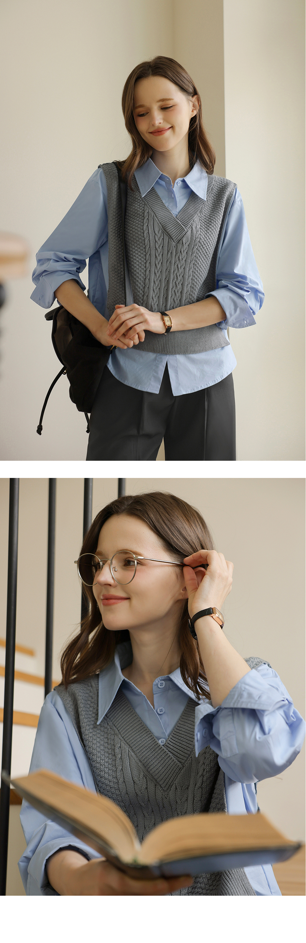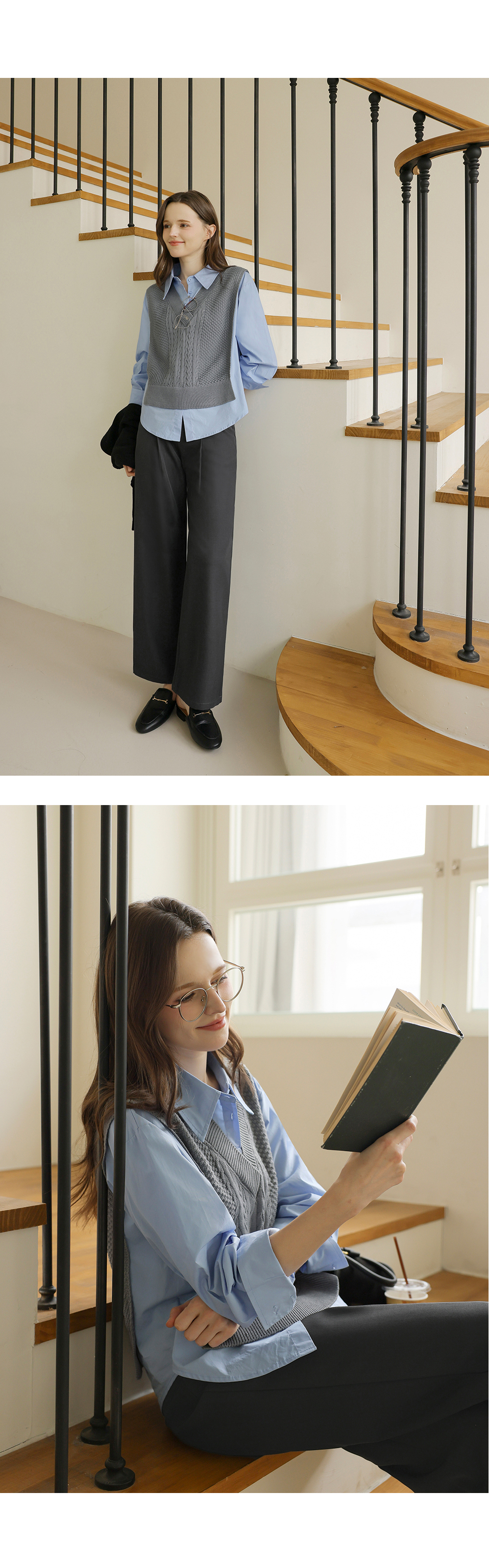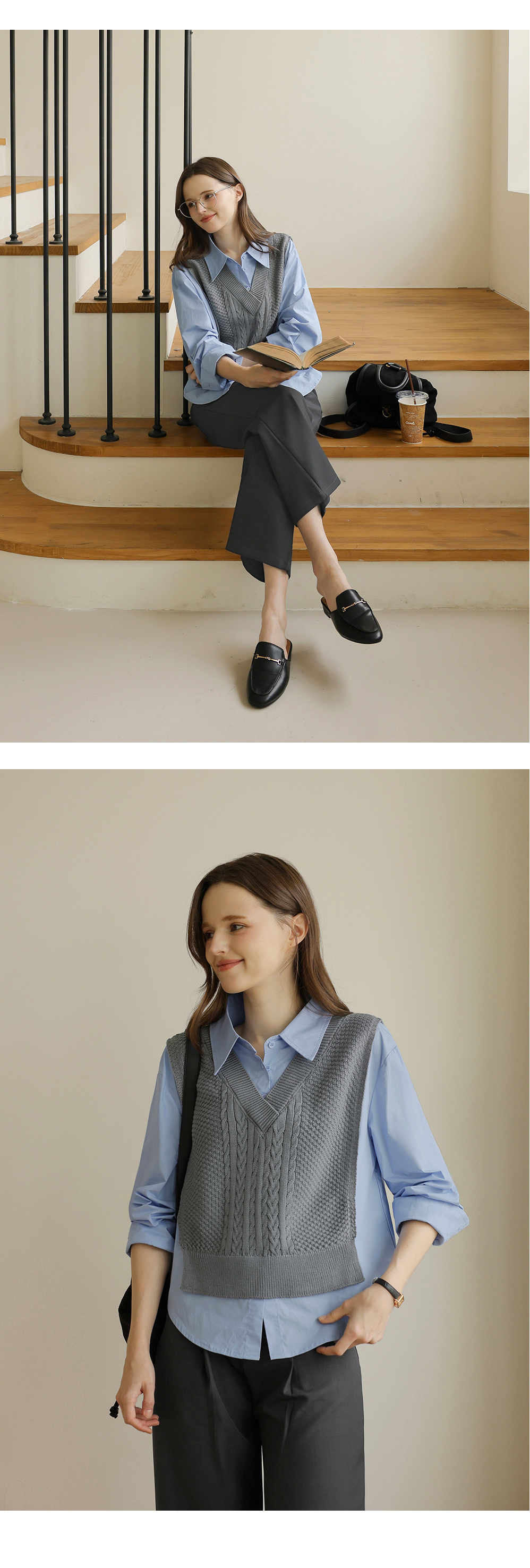 니트 : 아크릴 100% / 셔츠 : 면 60%, 폴리에스터 40%