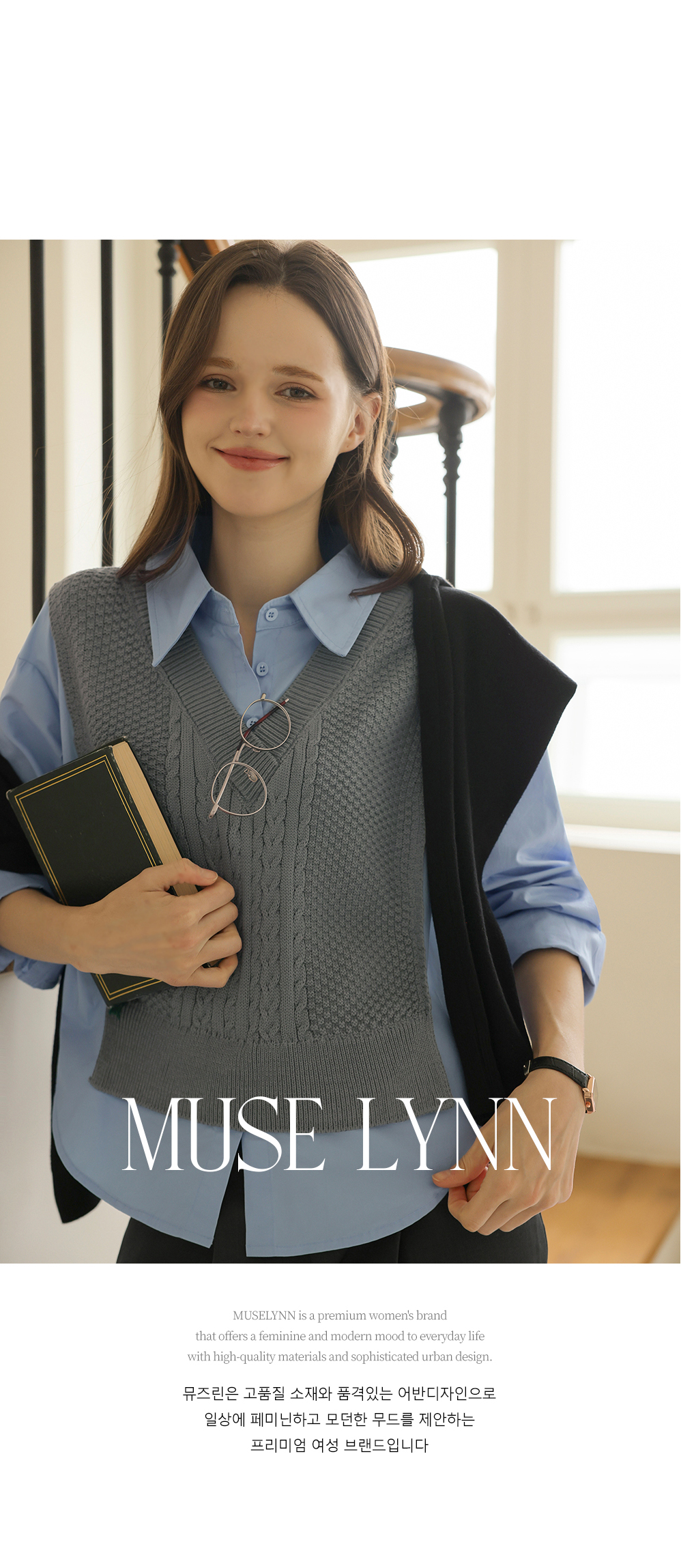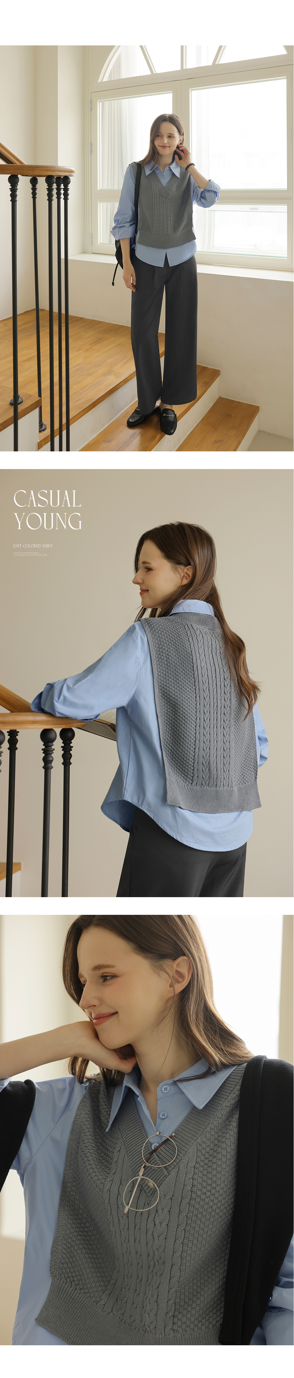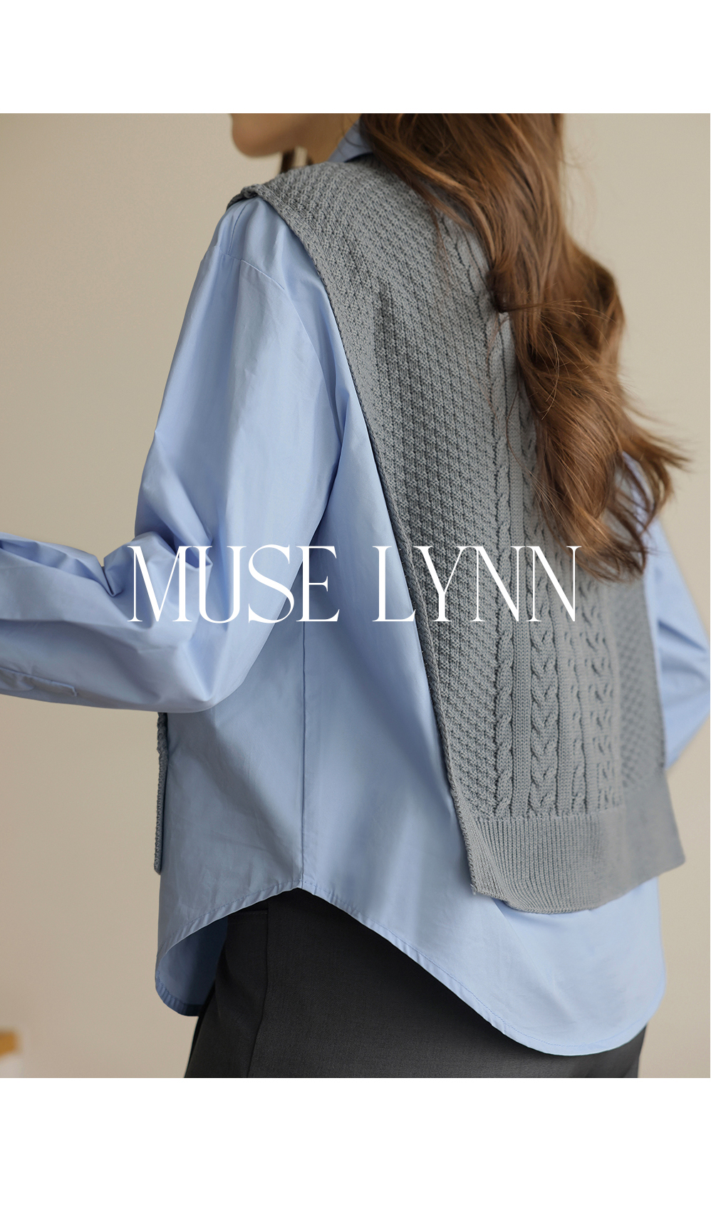 [뮤즈린] 던프 꽈배기 니트배색 셔츠