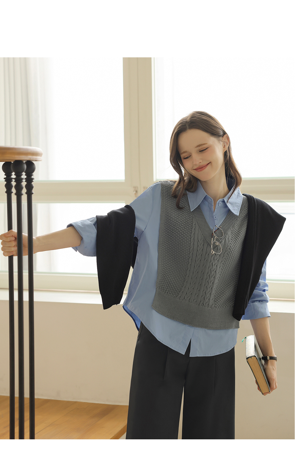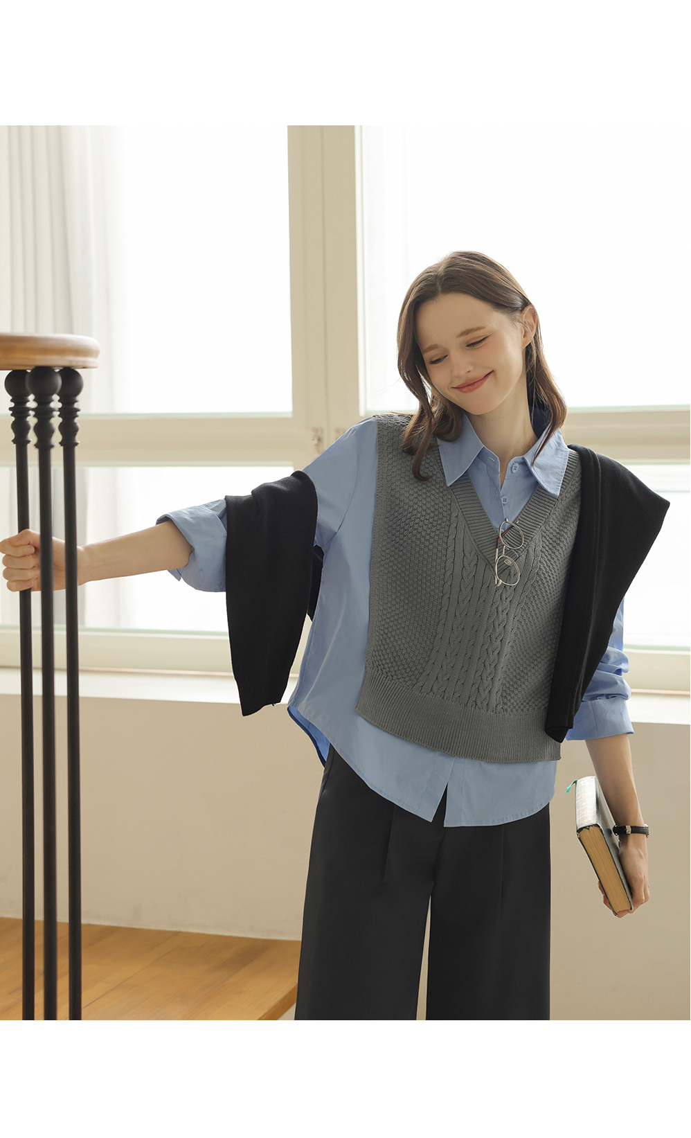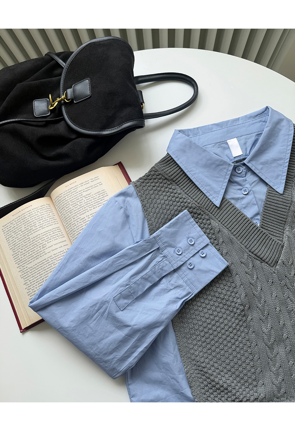 [뮤즈린] 던프 꽈배기 니트배색 셔츠