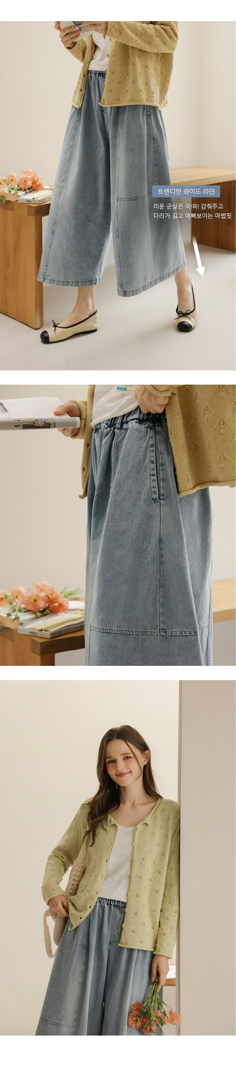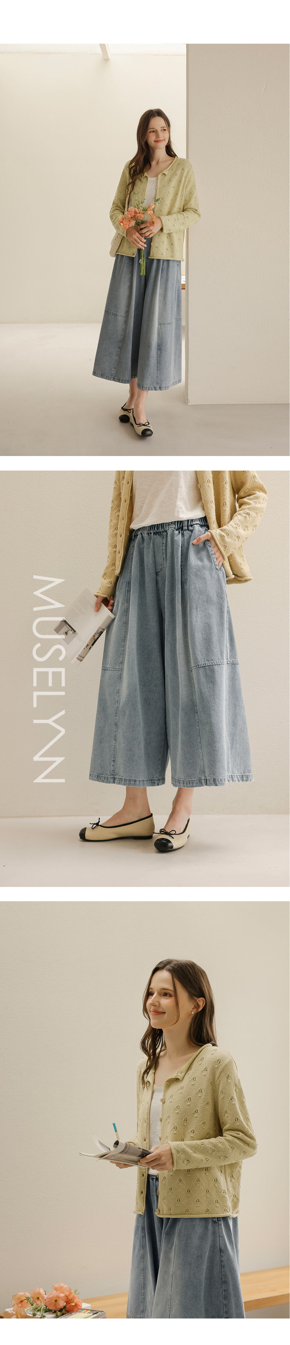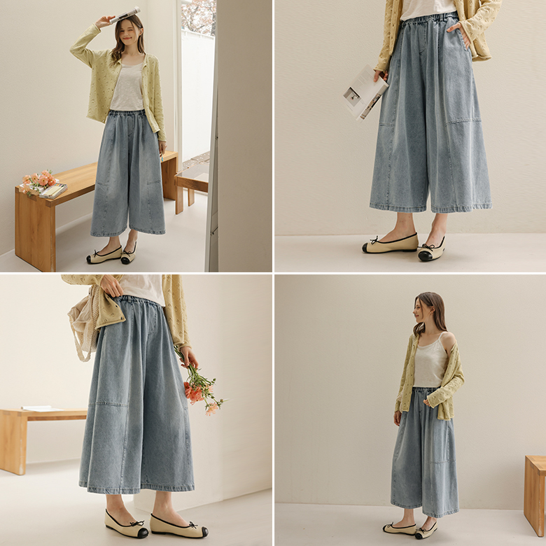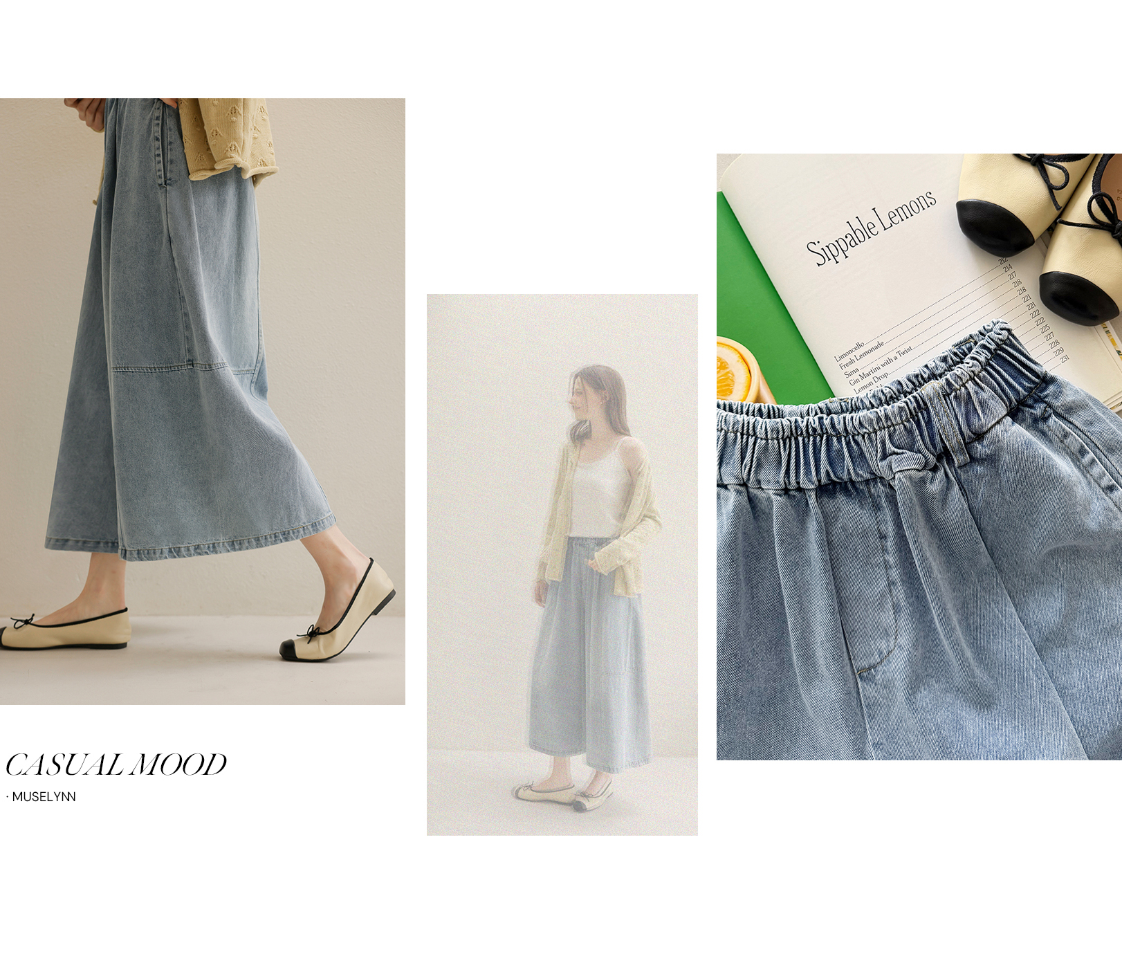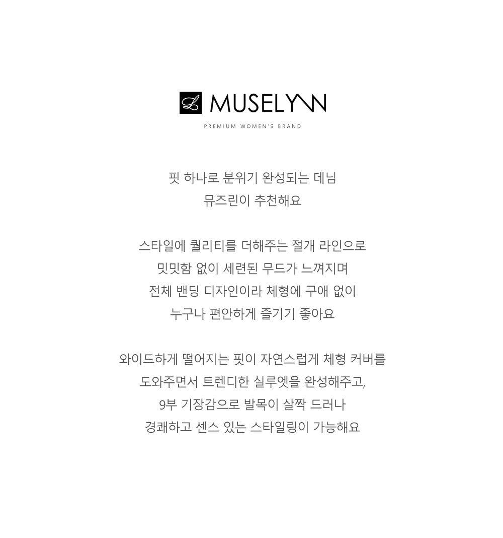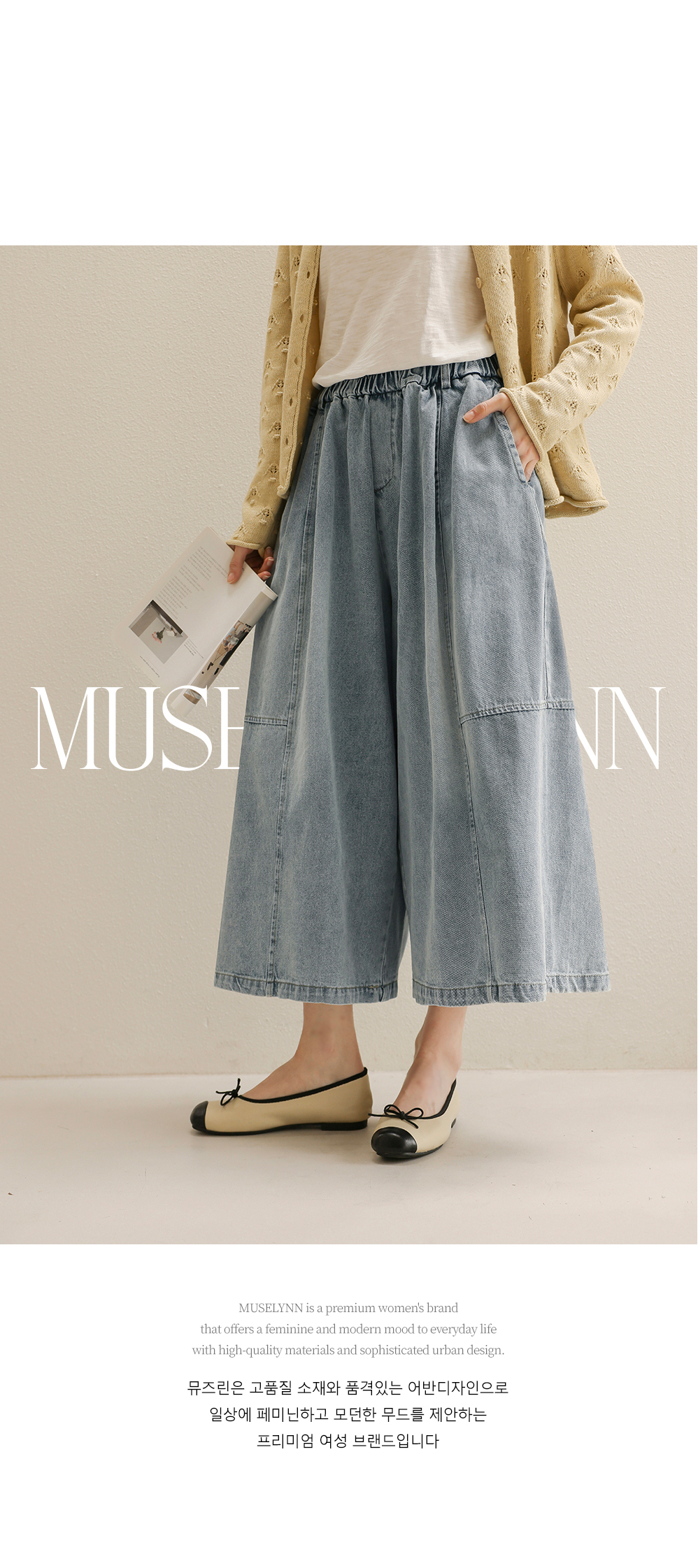 [뮤즈린] 니온 절개 9부 와이드 데님팬츠 [밴딩]