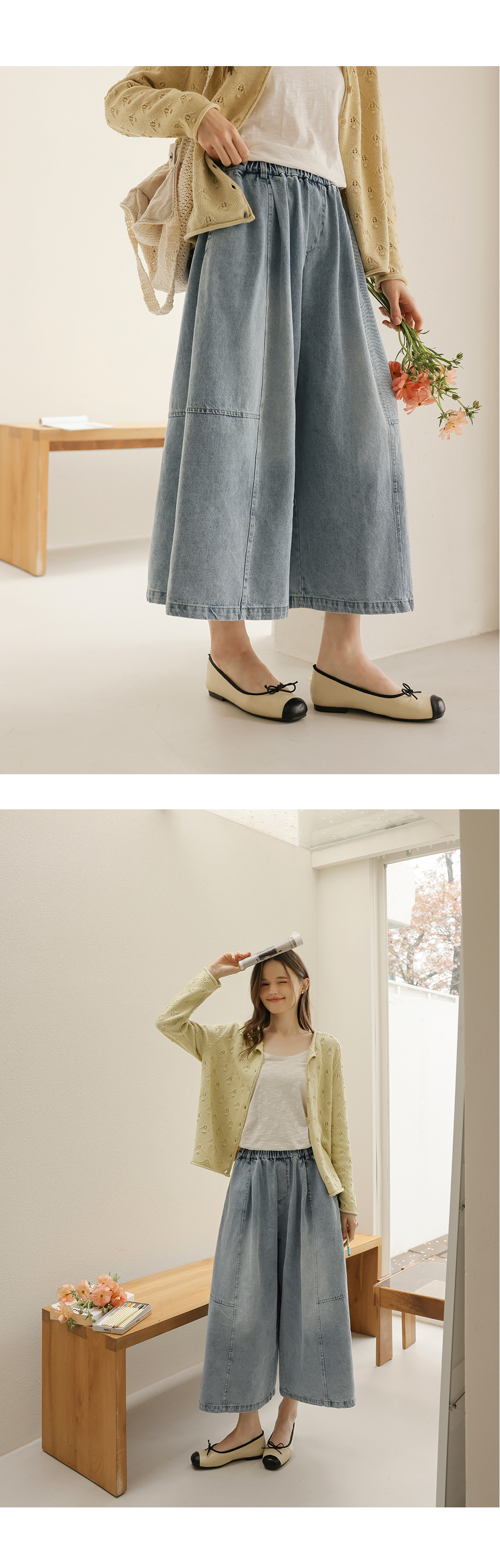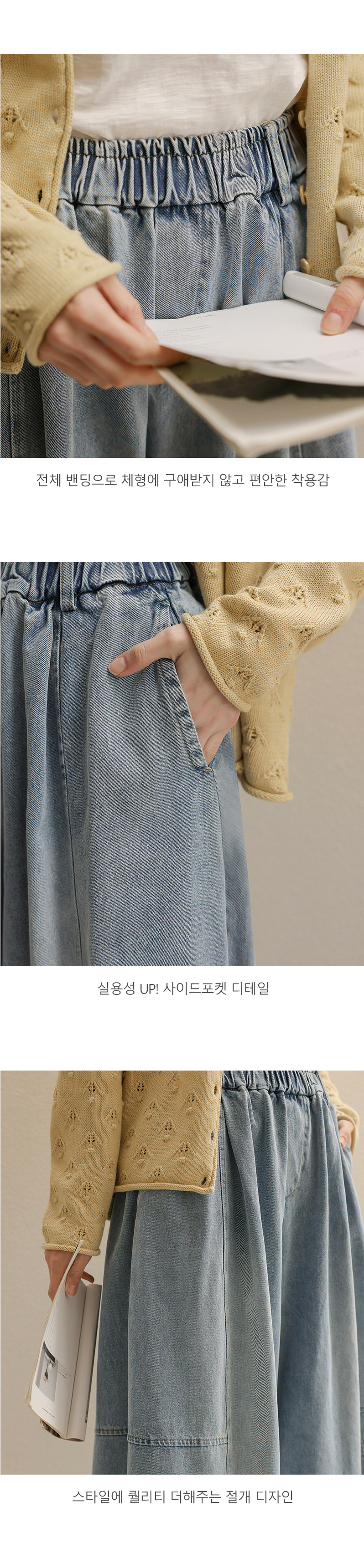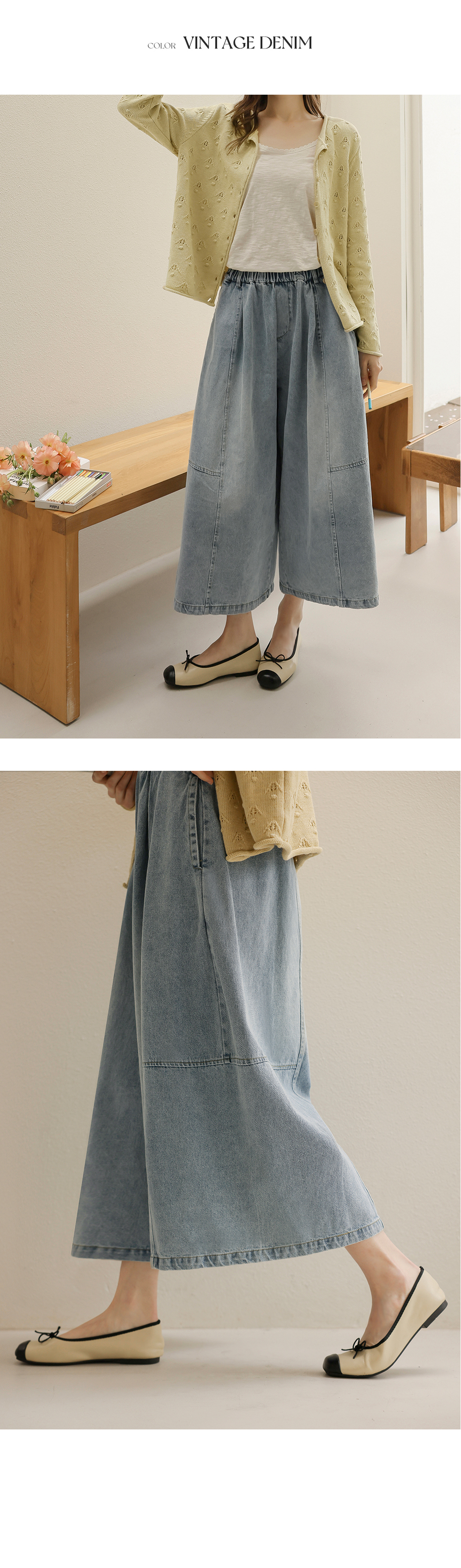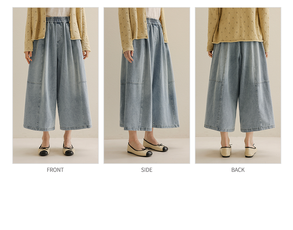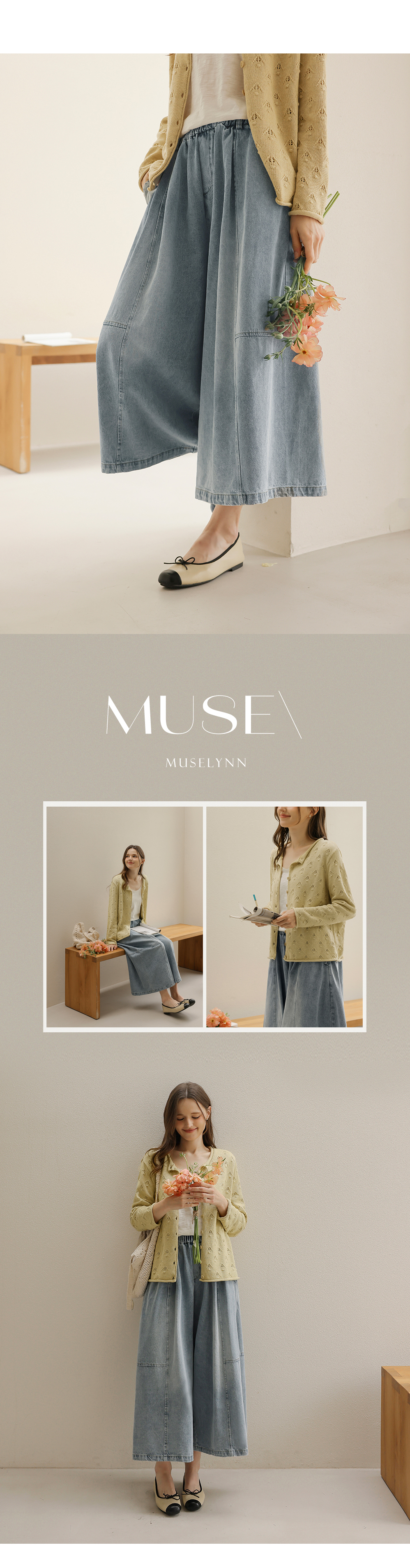 [뮤즈린] 니온 절개 9부 와이드 데님팬츠 [밴딩]
