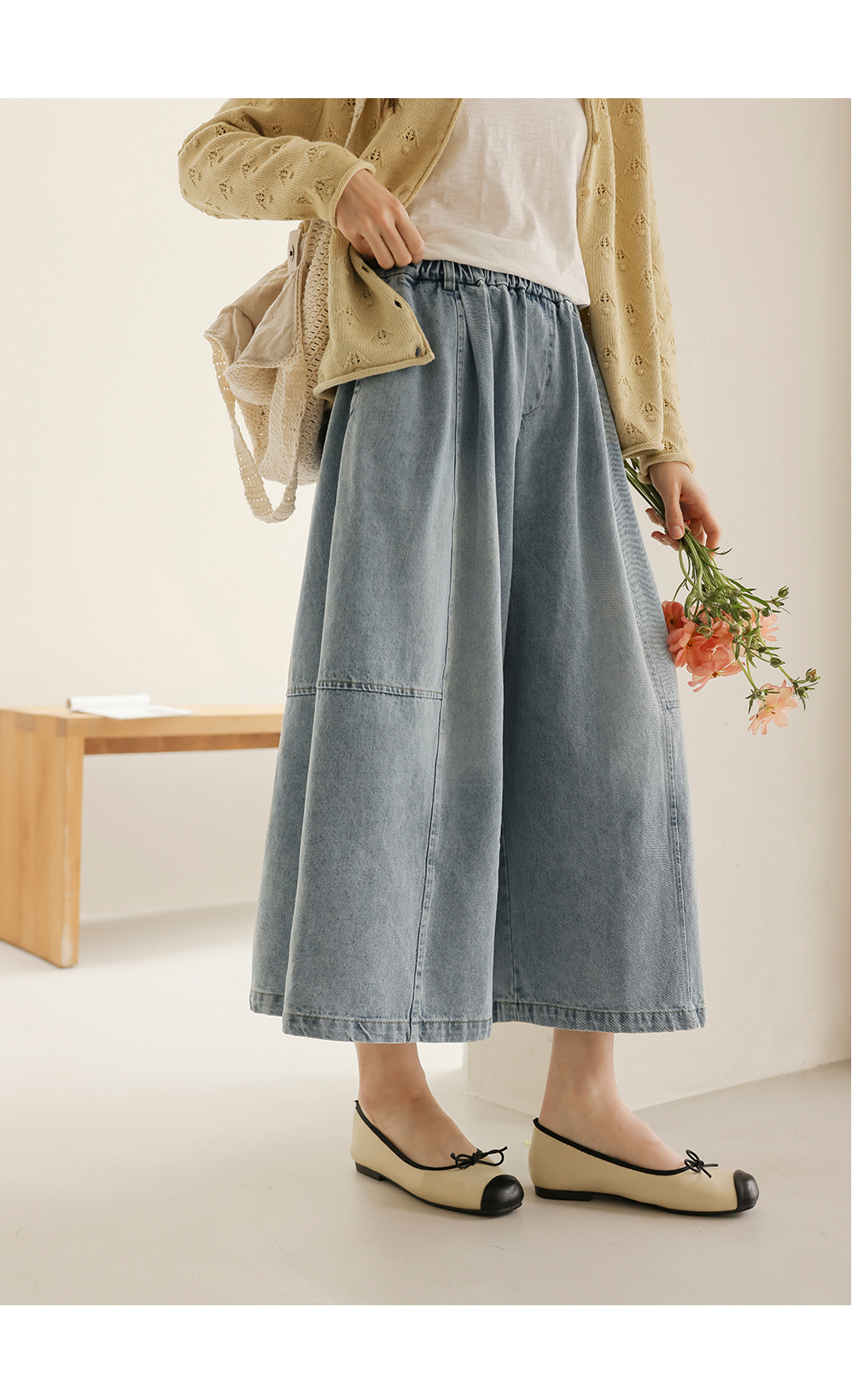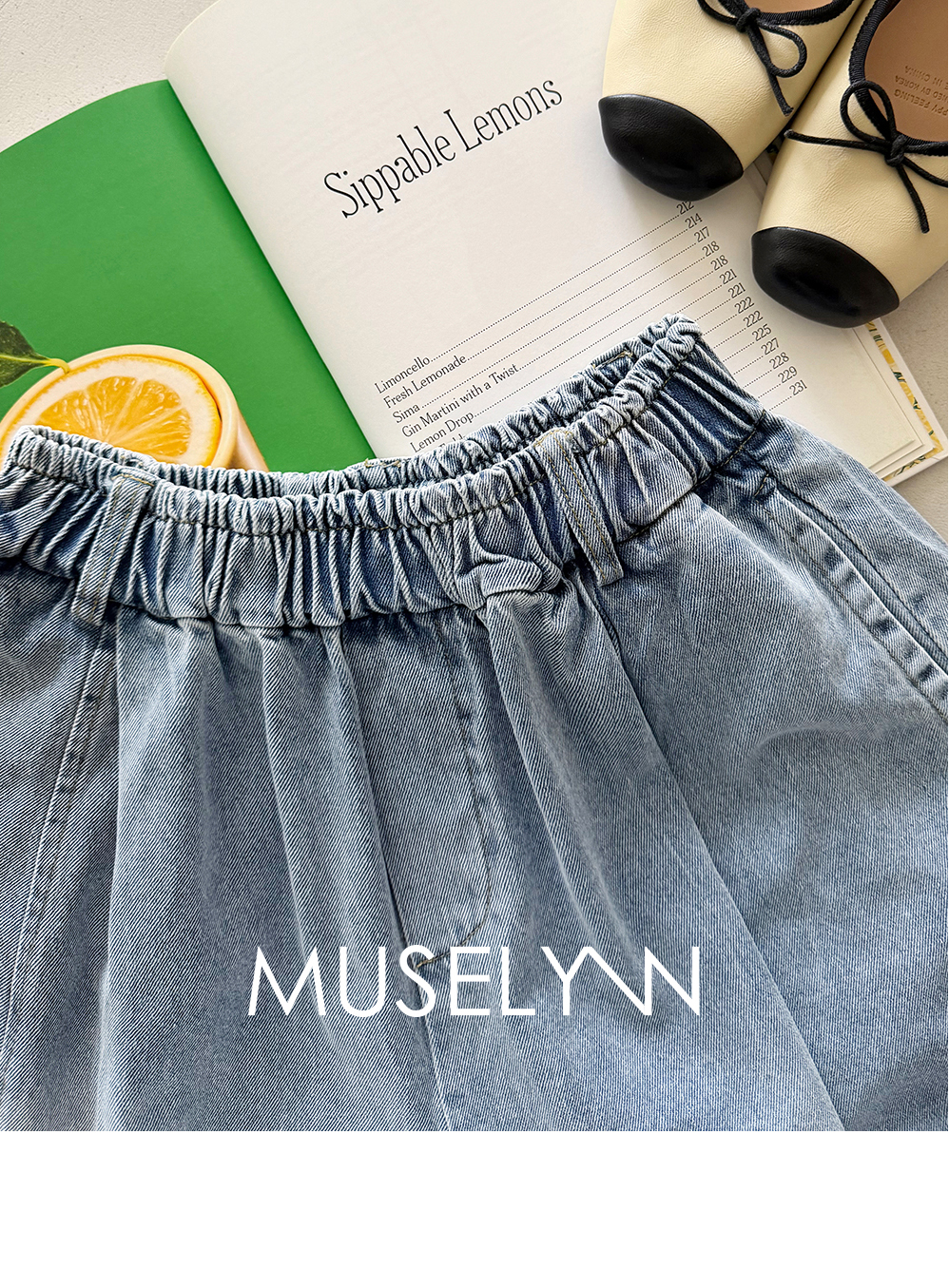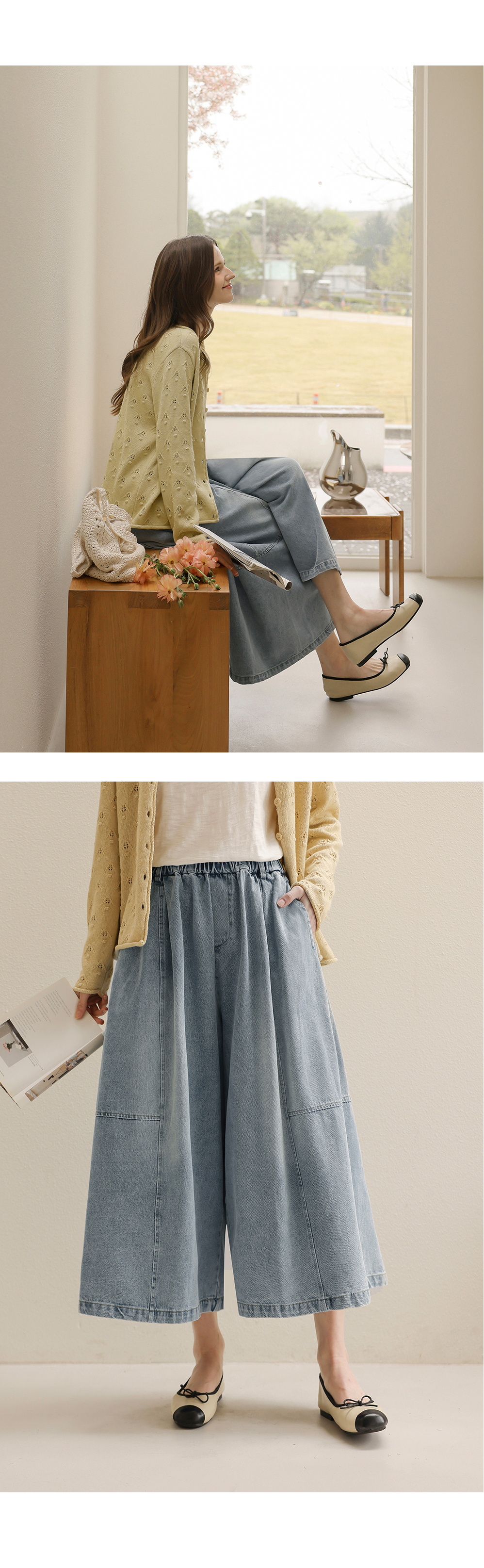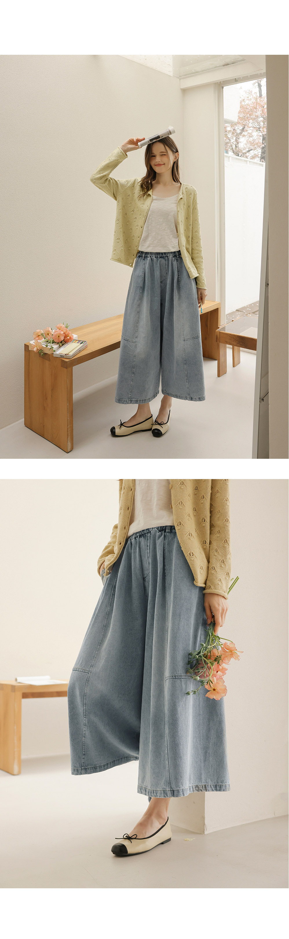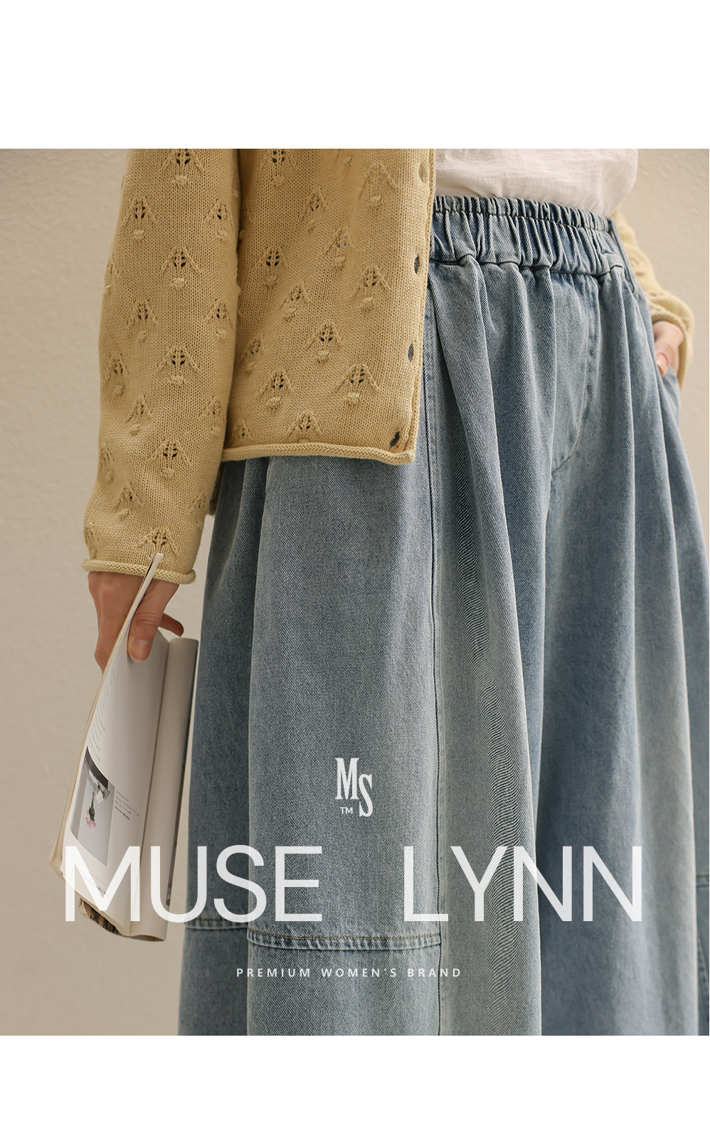 [뮤즈린] 니온 절개 9부 와이드 데님팬츠 [밴딩]