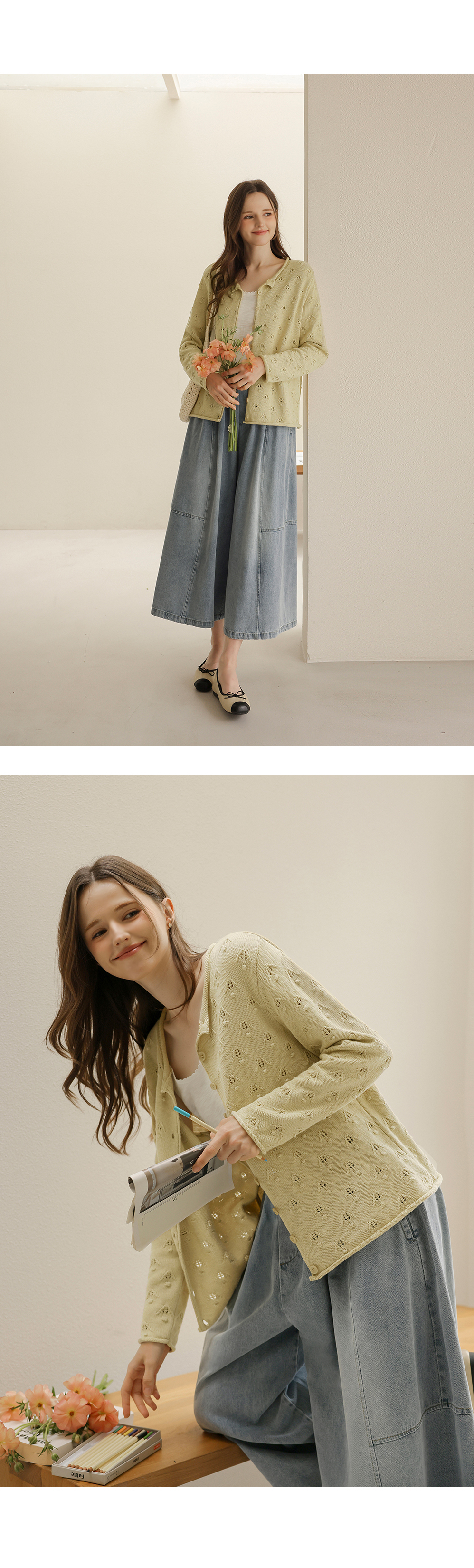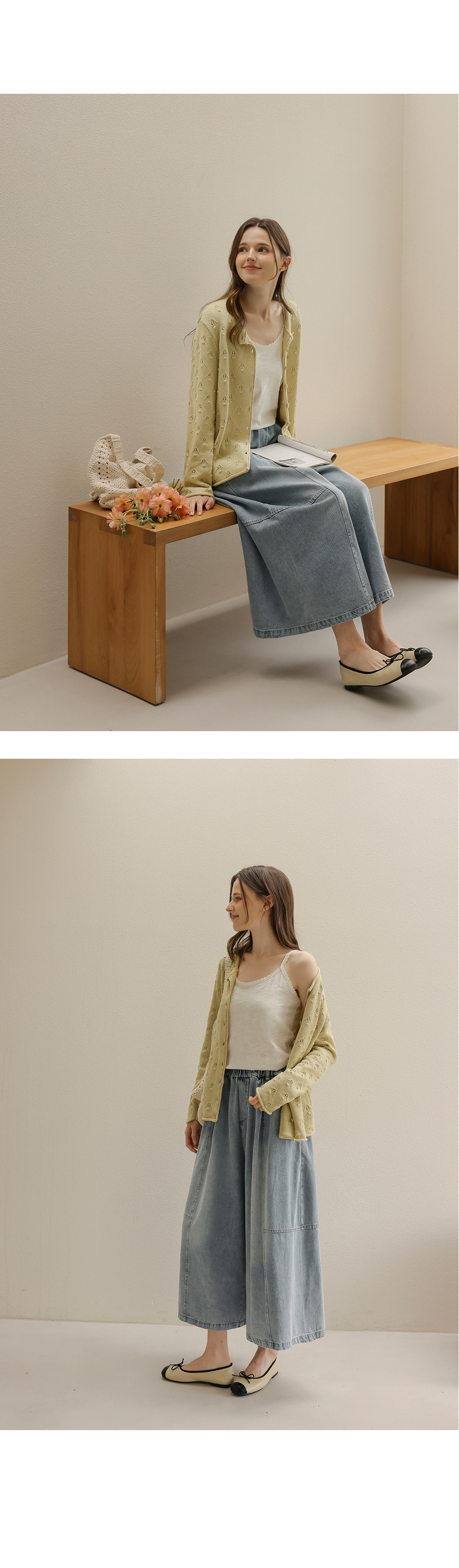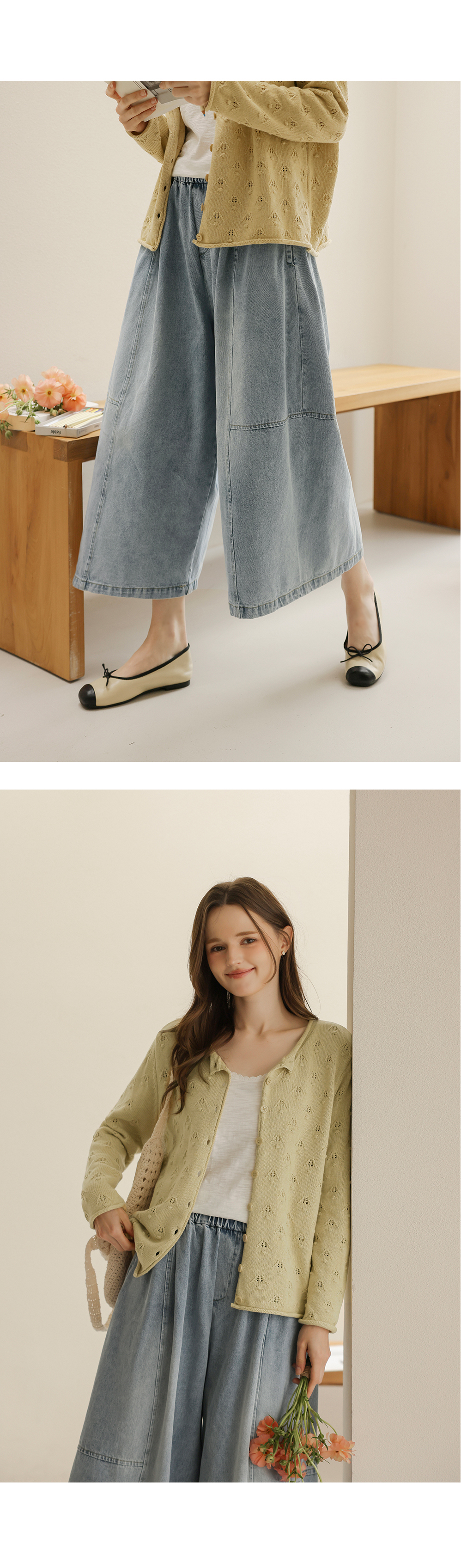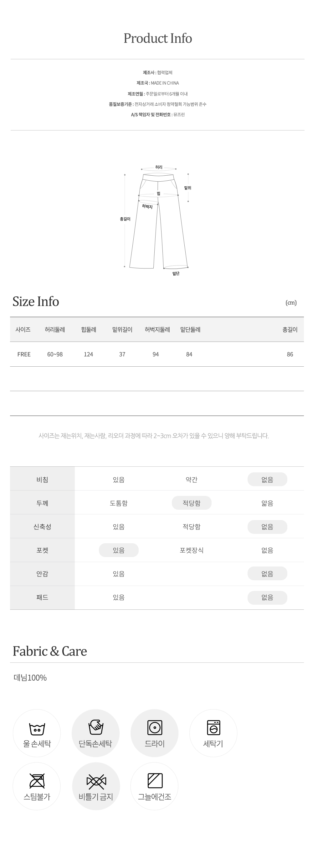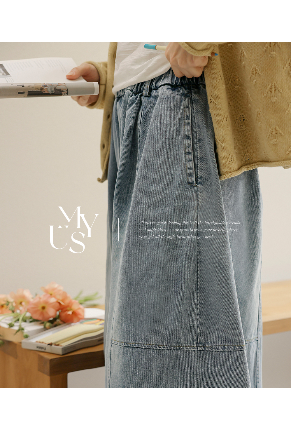 [뮤즈린] 니온 절개 9부 와이드 데님팬츠 [밴딩]