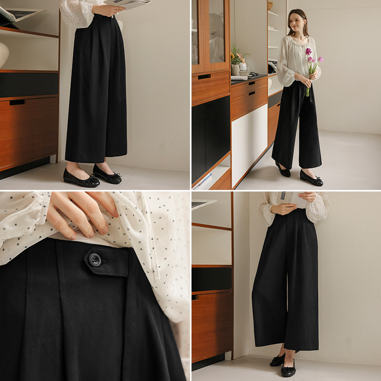 [뮤즈린] 베르니 핀턱 와이드 팬츠 [밴딩]