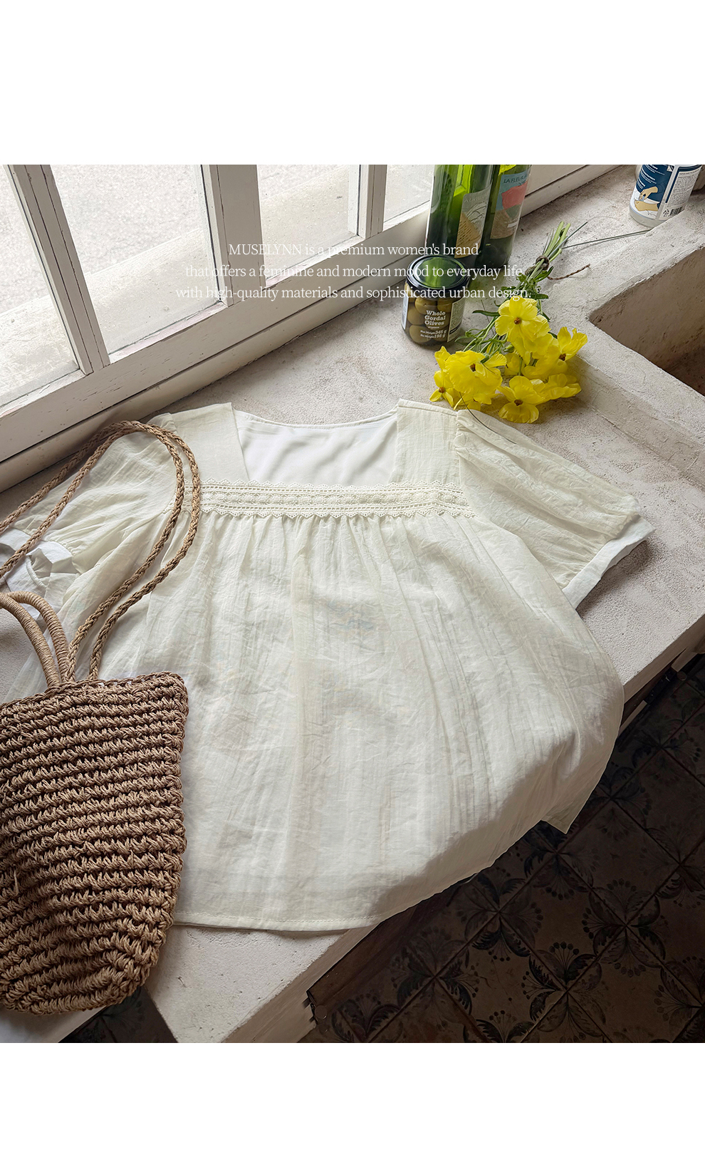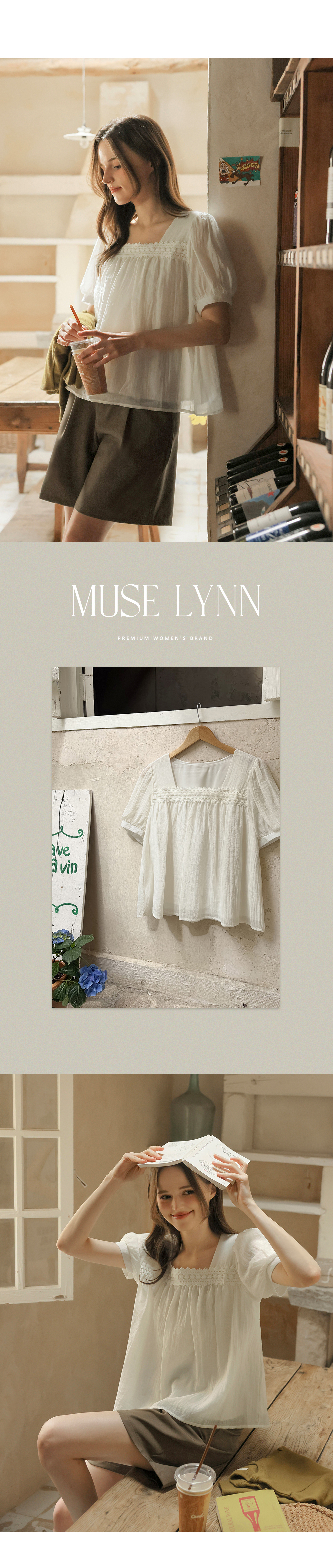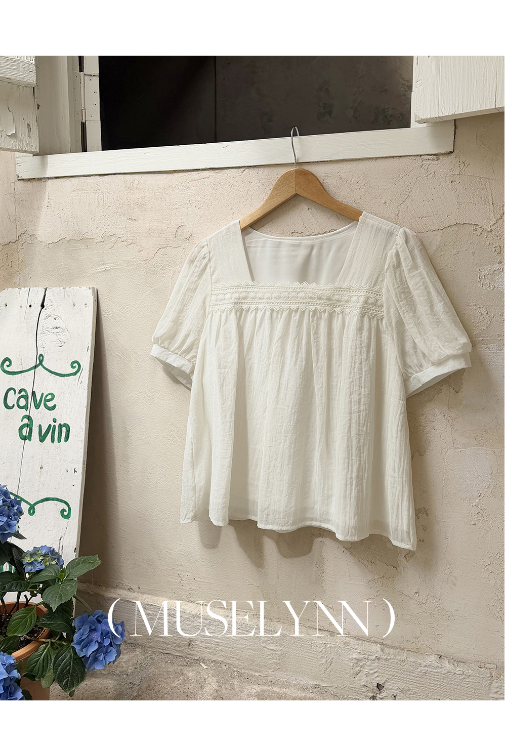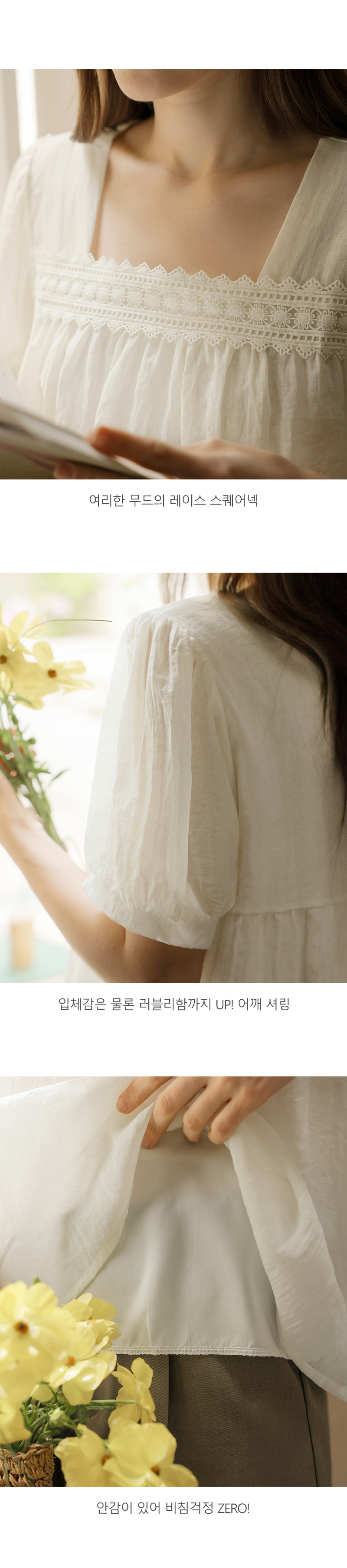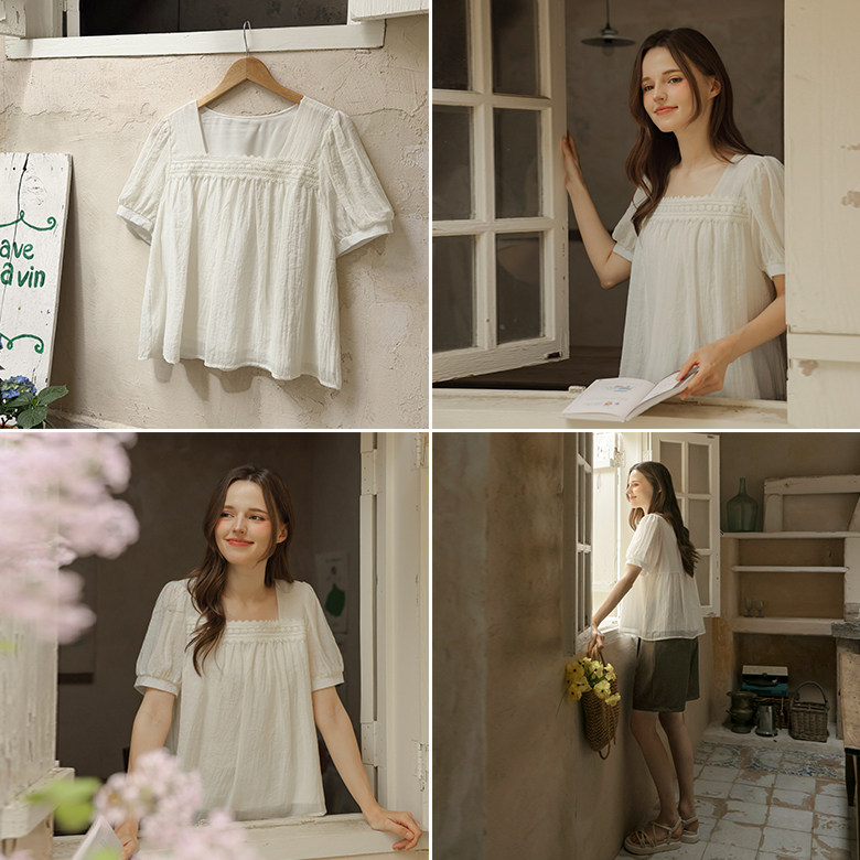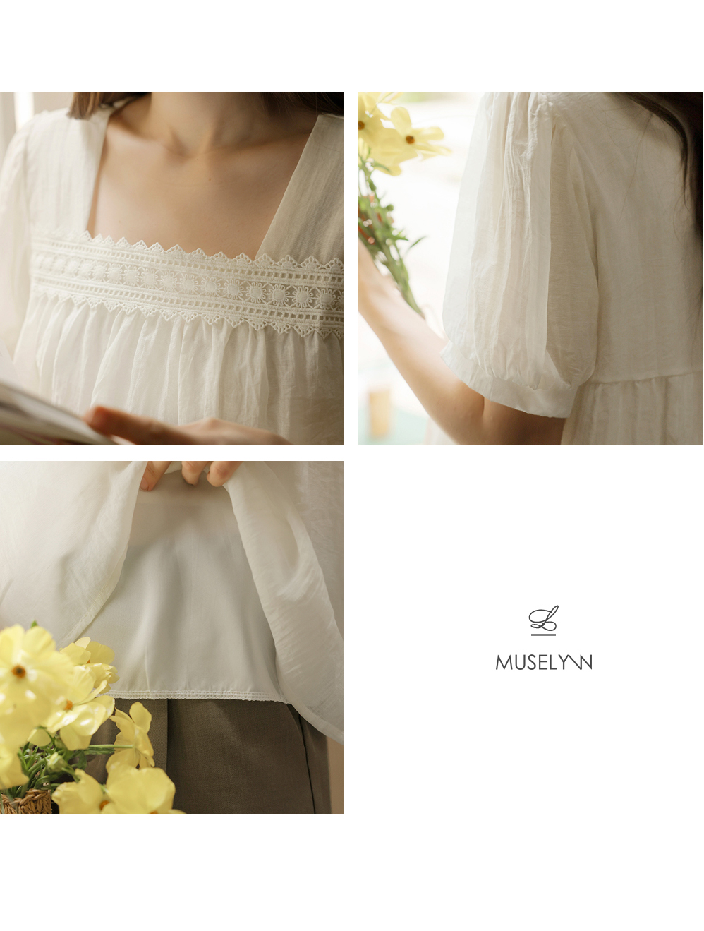 [뮤즈린] 르딘 레이스 스퀘어넥 블라우스