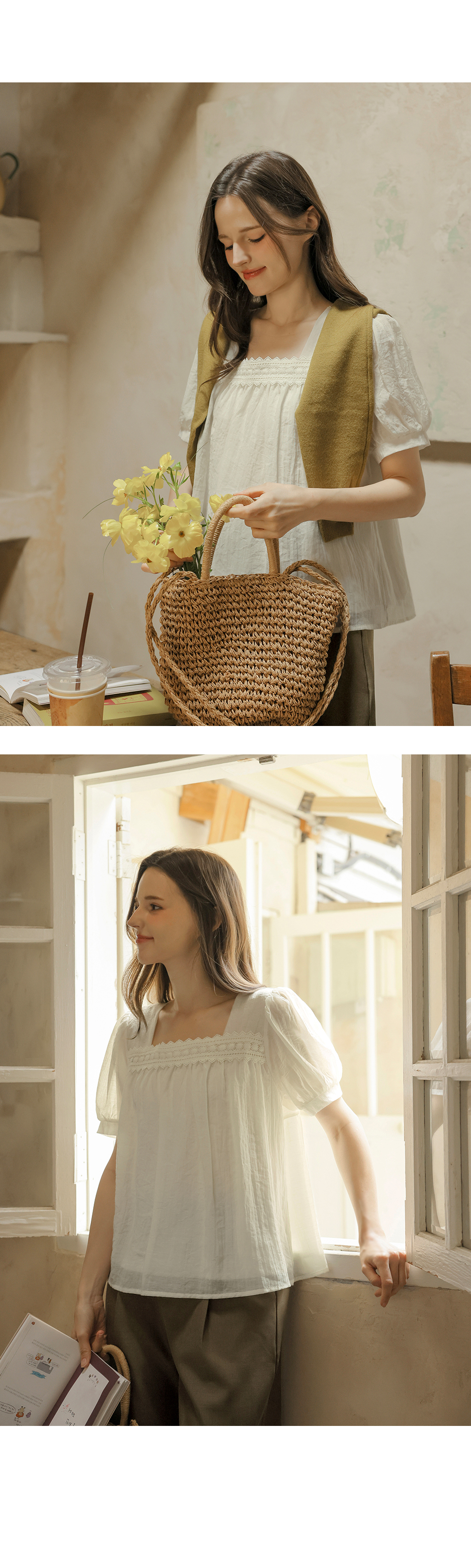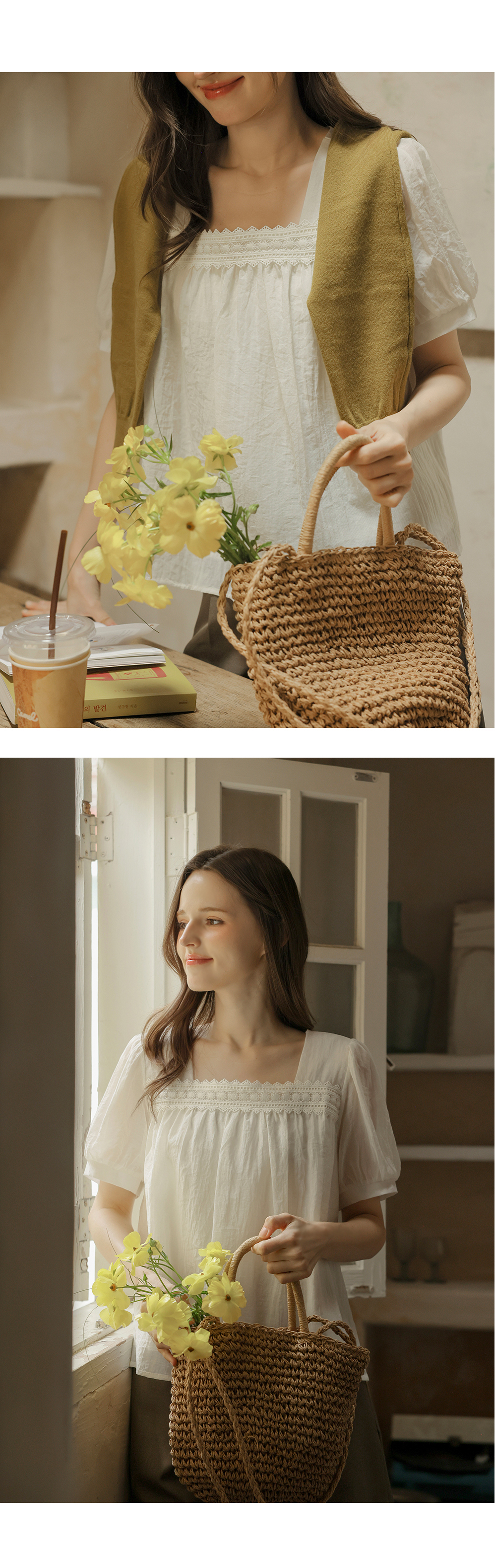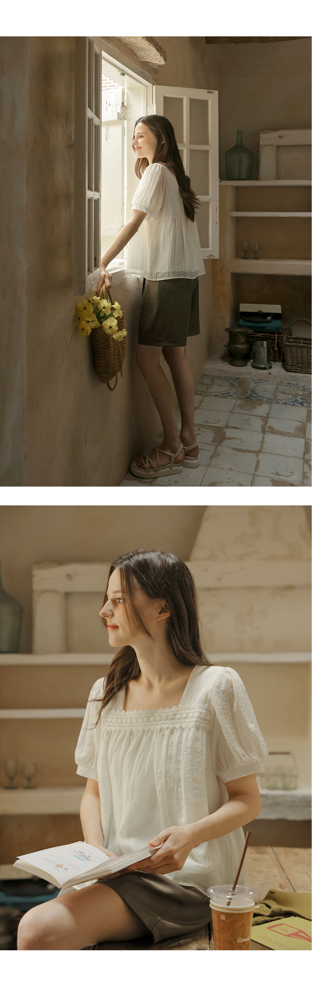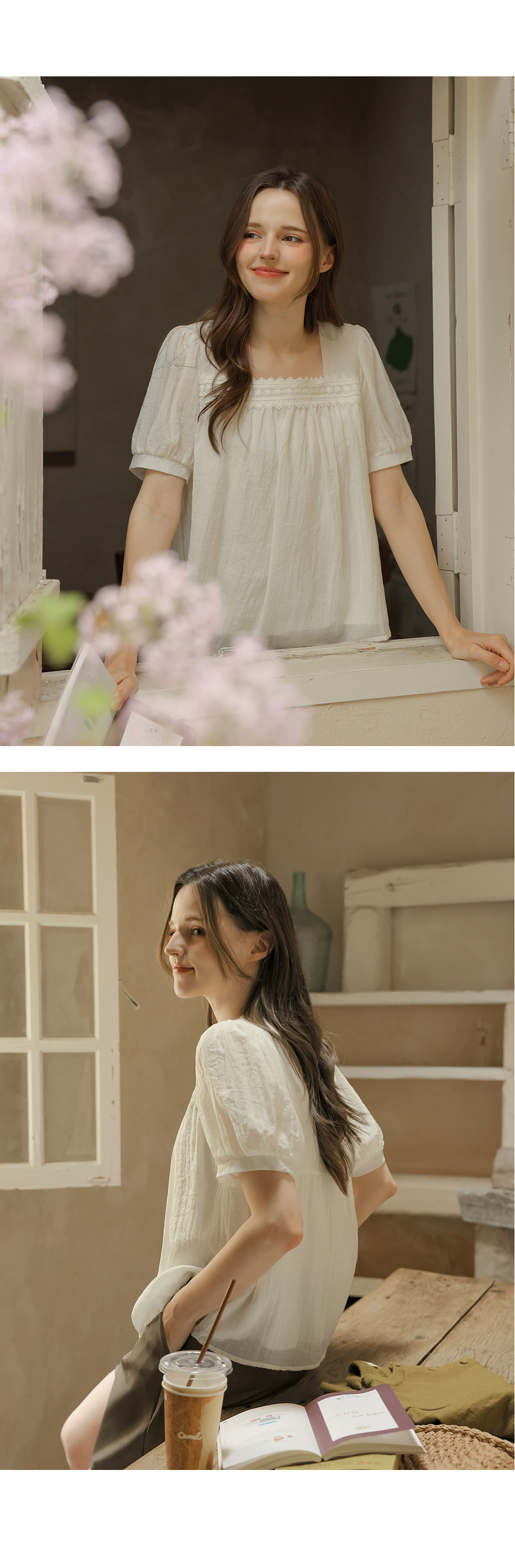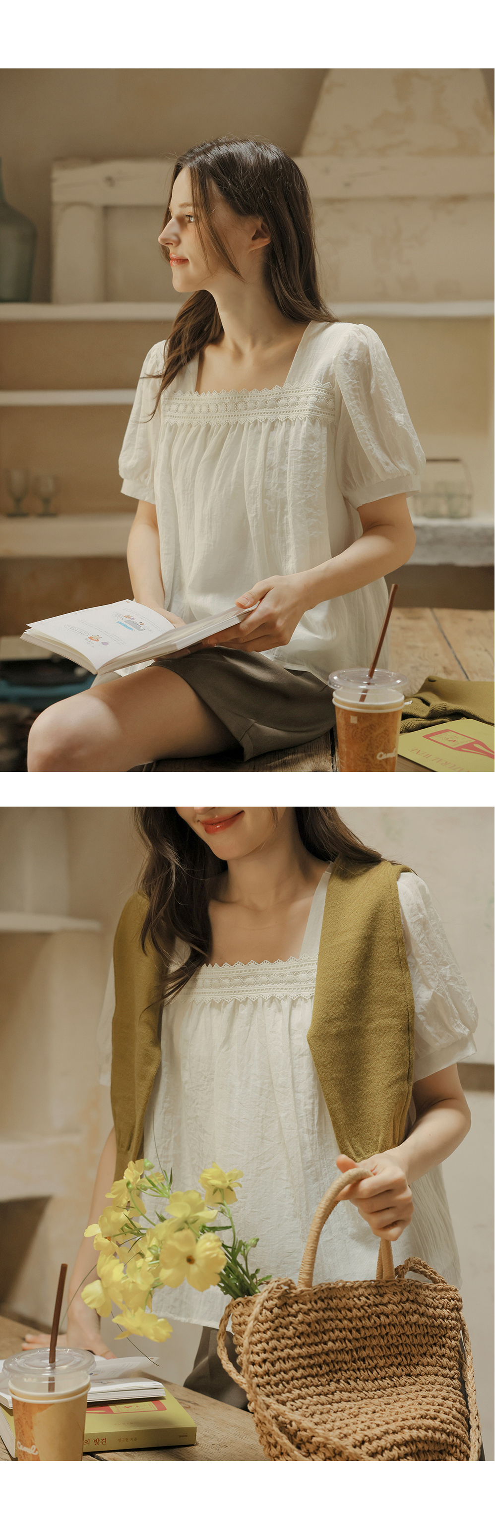 [뮤즈린] 르딘 레이스 스퀘어넥 블라우스