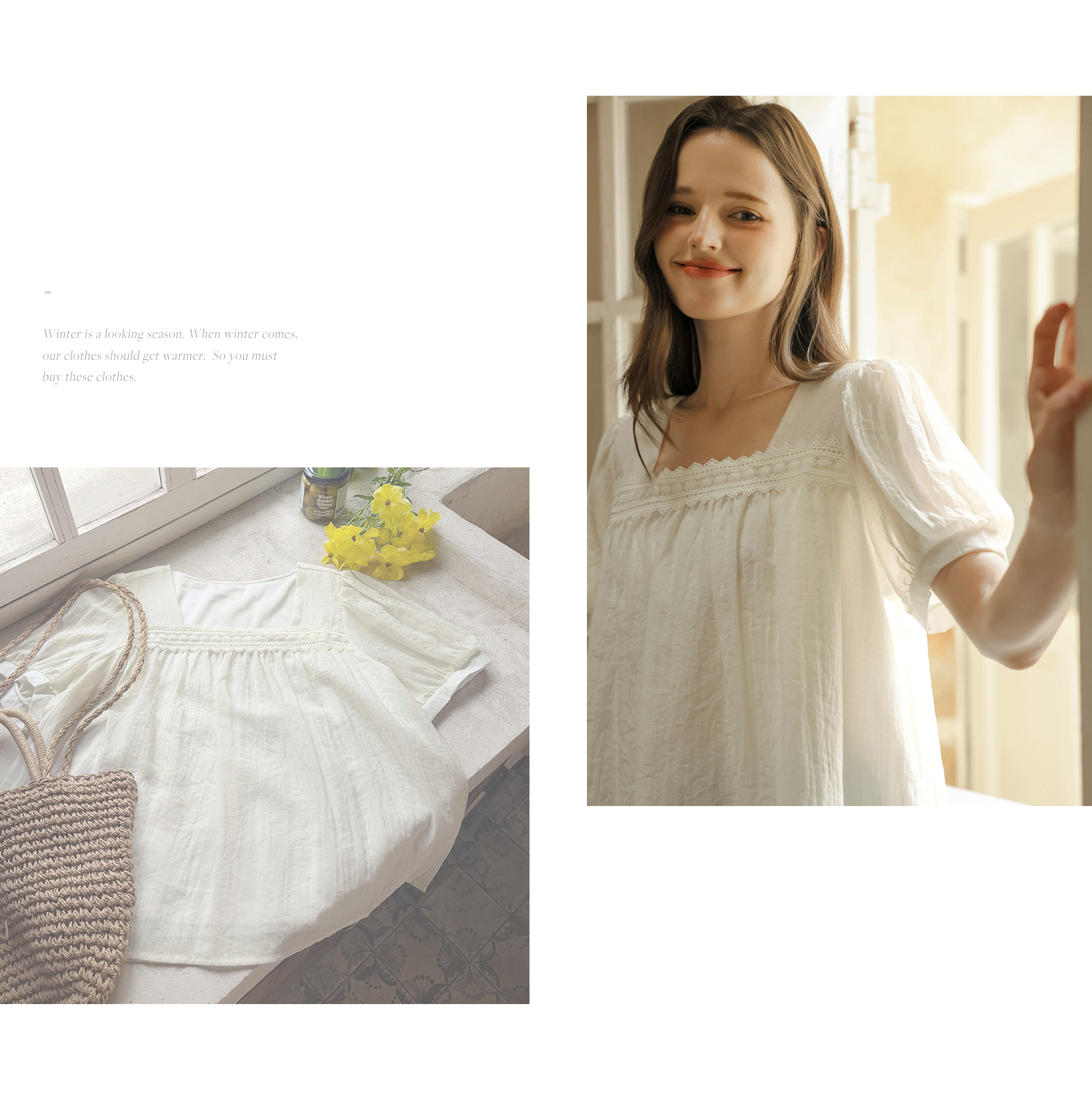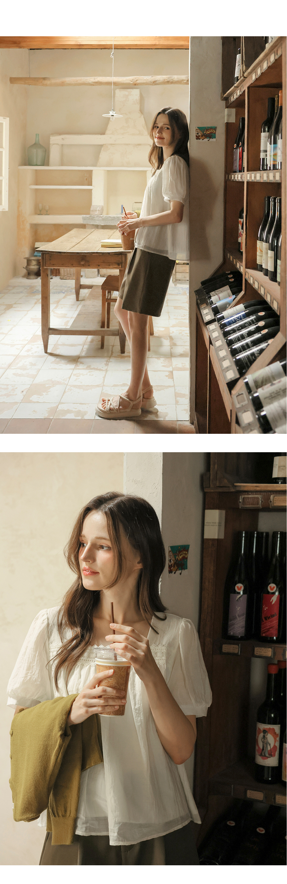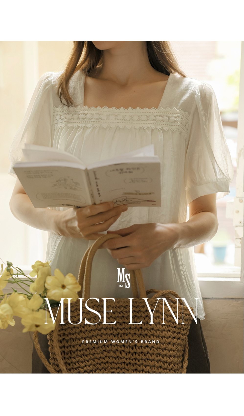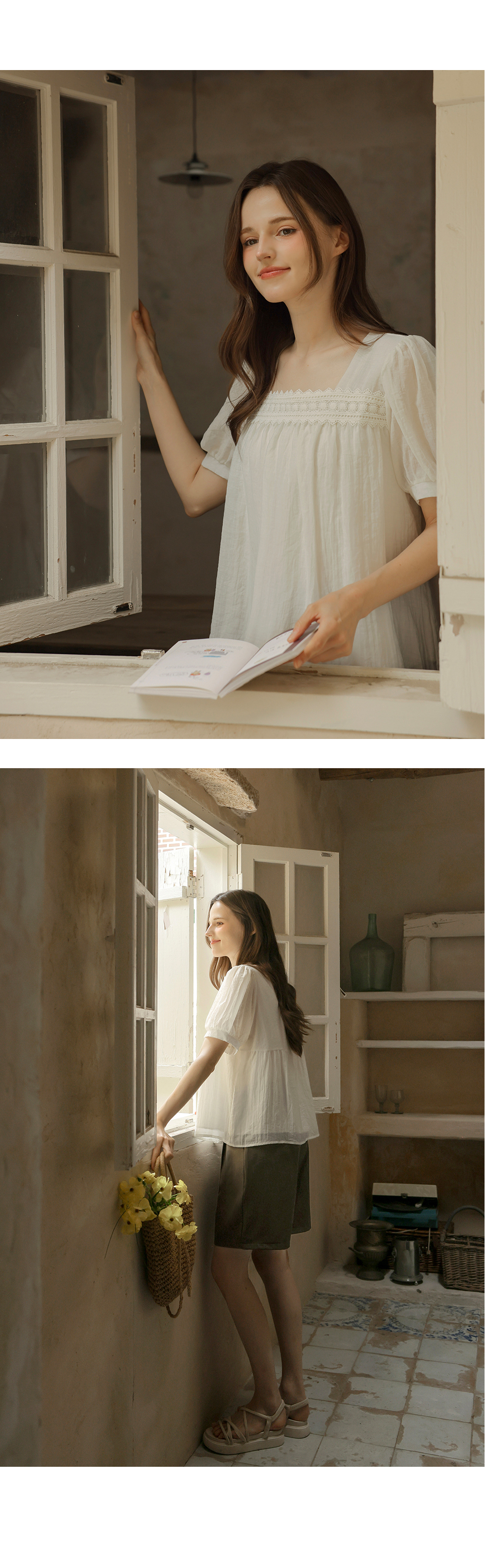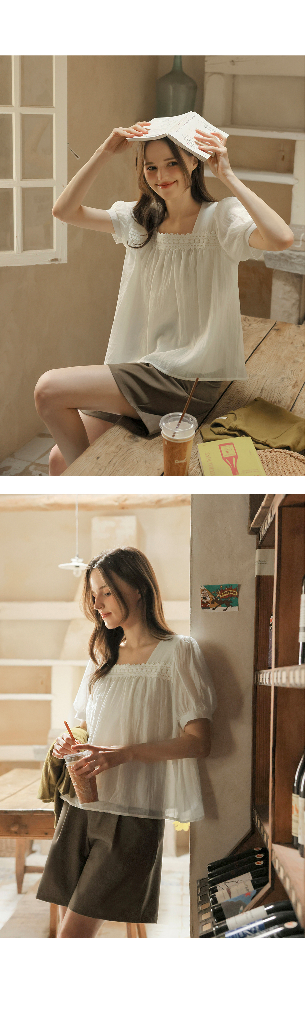 [뮤즈린] 르딘 레이스 스퀘어넥 블라우스